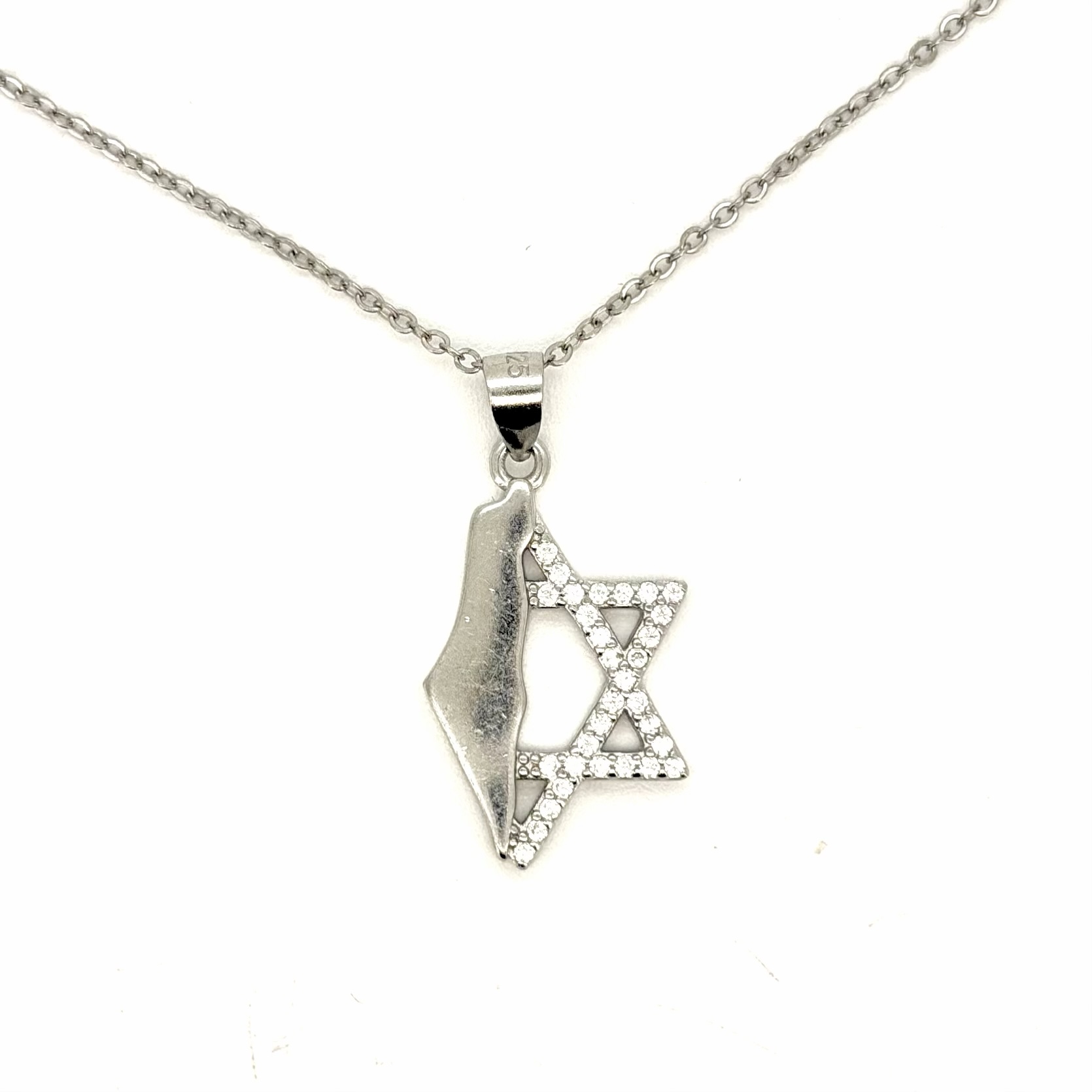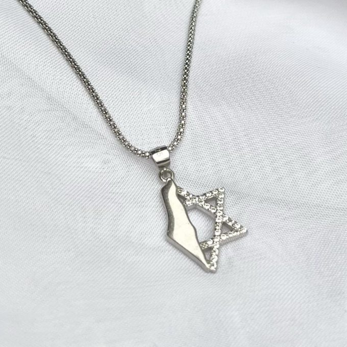 שרשרת חצי מגן משובץ חצי מפת ארץ ישראל חלק מכסף אמיתי 925