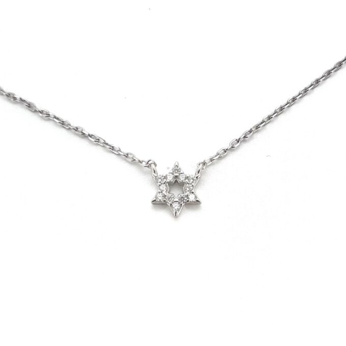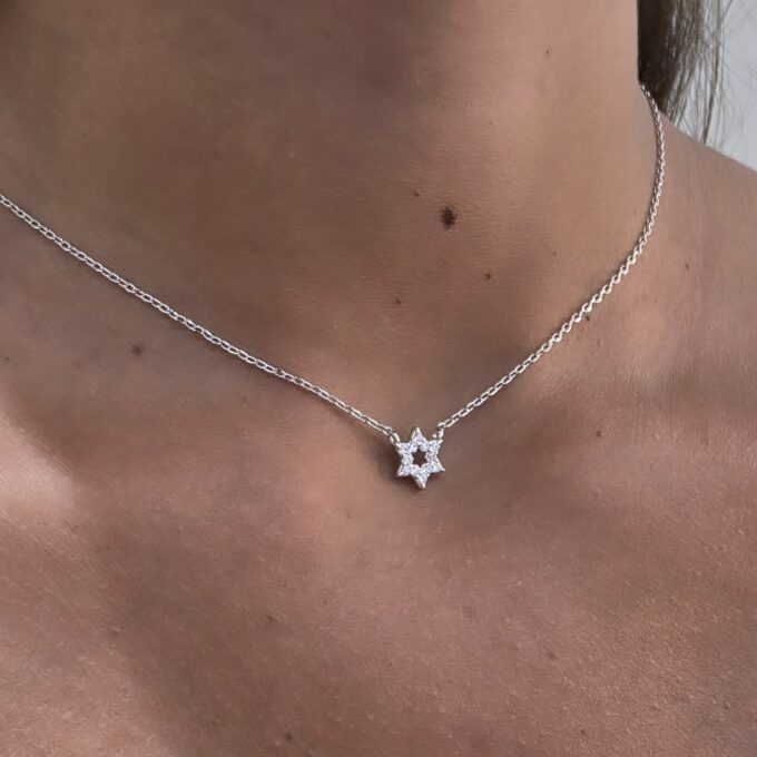 שרשרת עם תליון מגן דוד משובץ אבני זרקון מכסף אמיתי 925