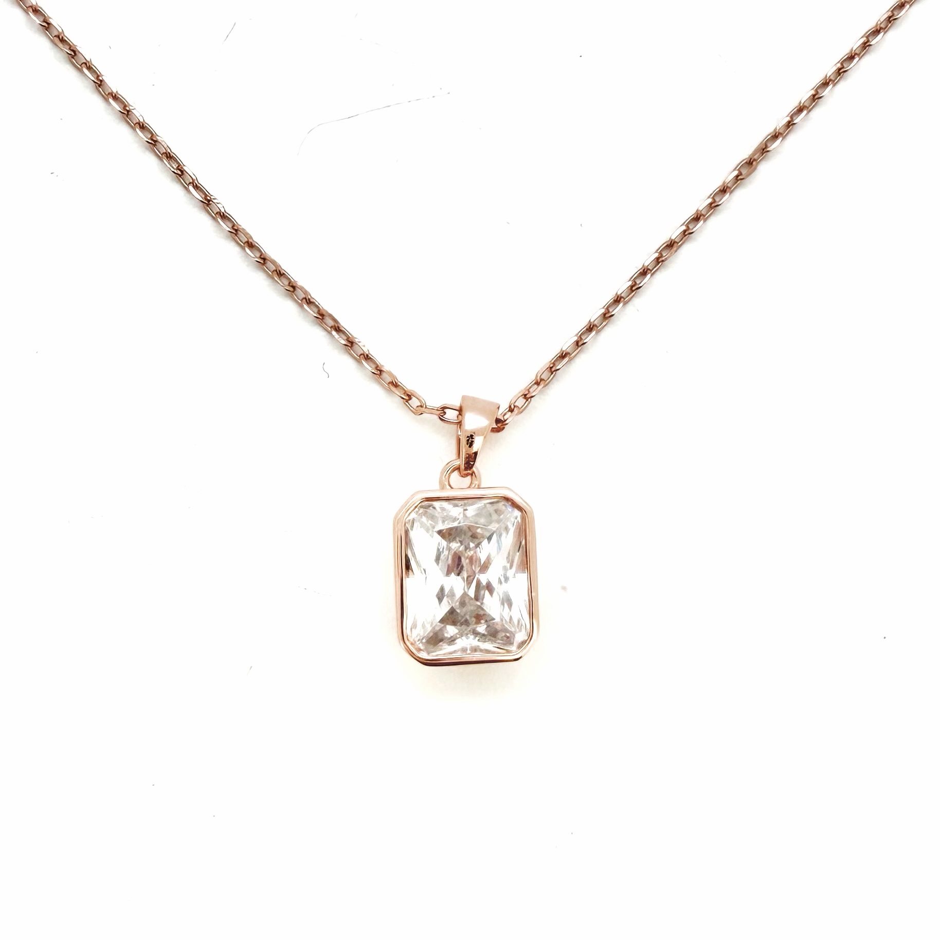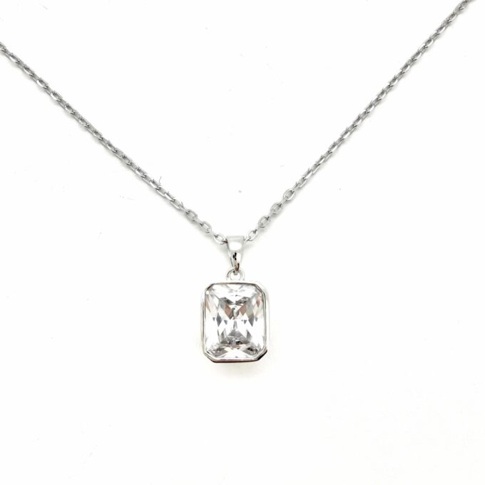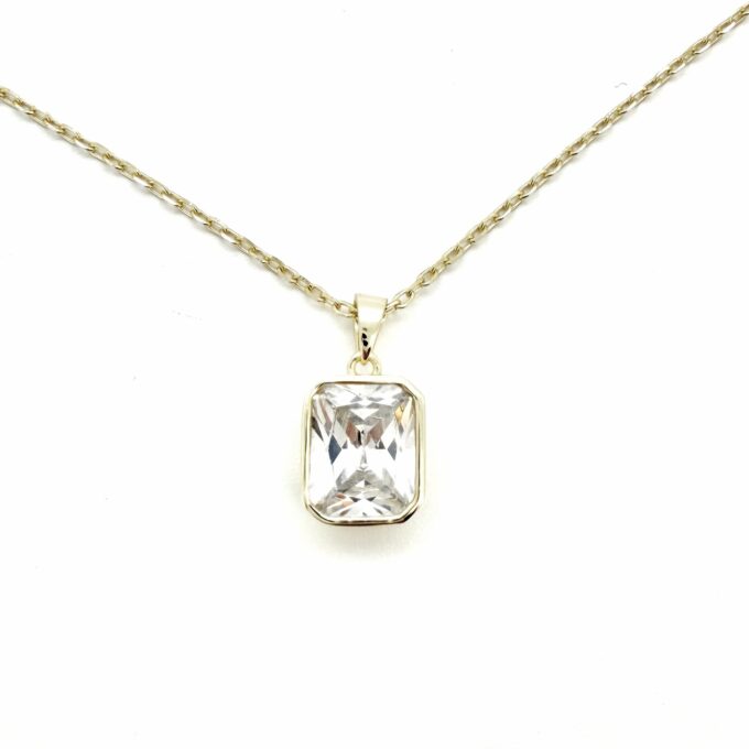 שרשרת עם תליון אבן זרקון בצורת מלבן