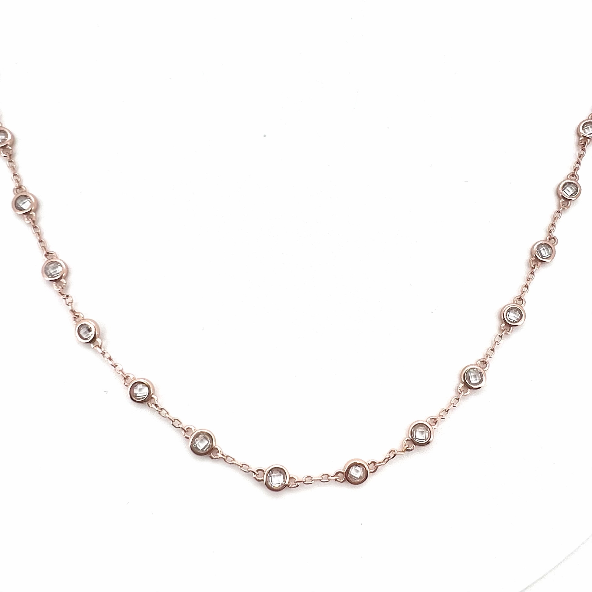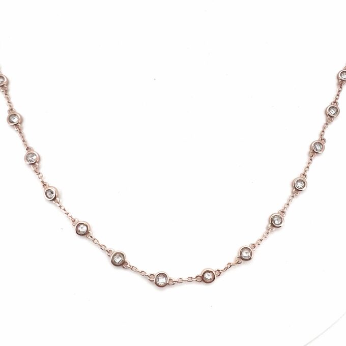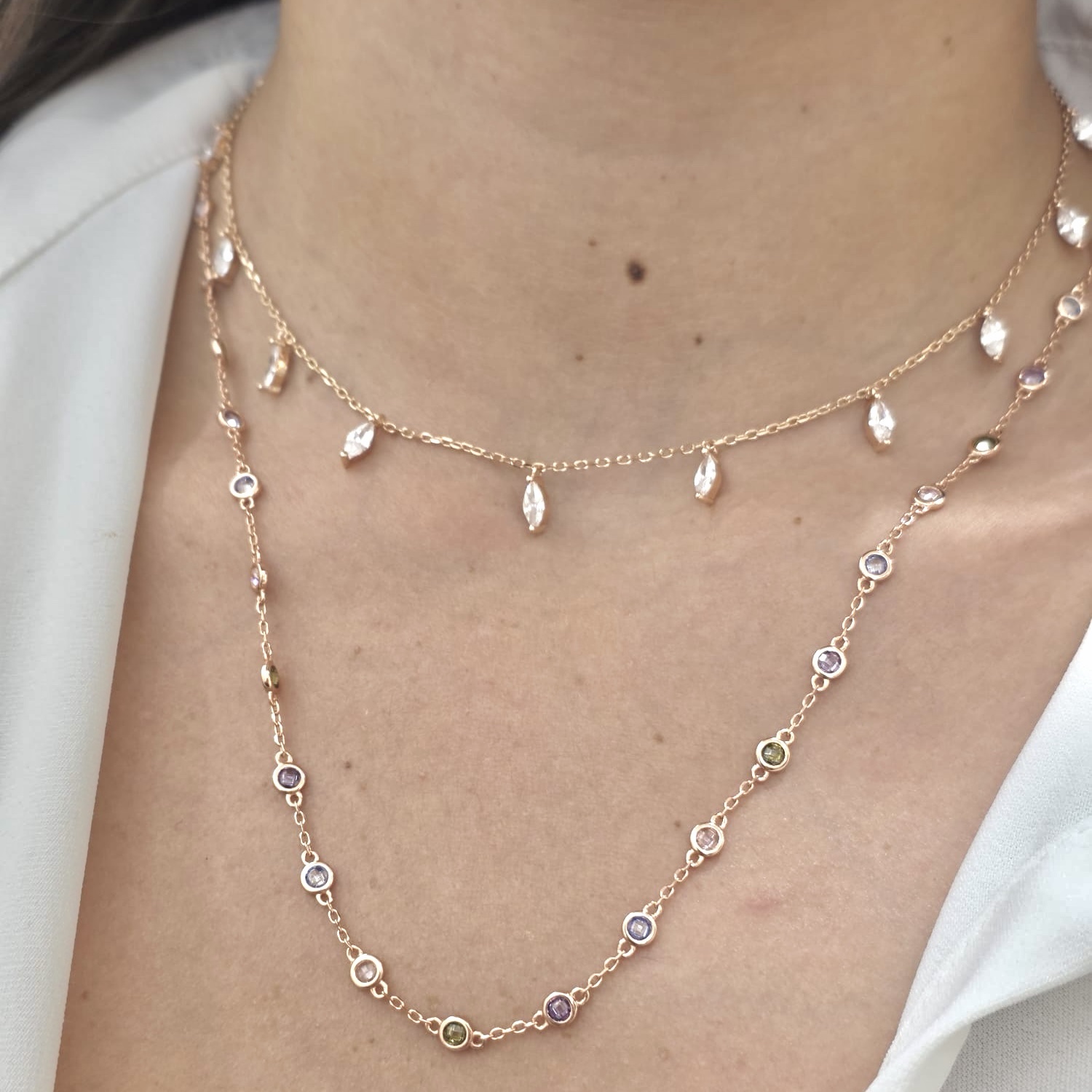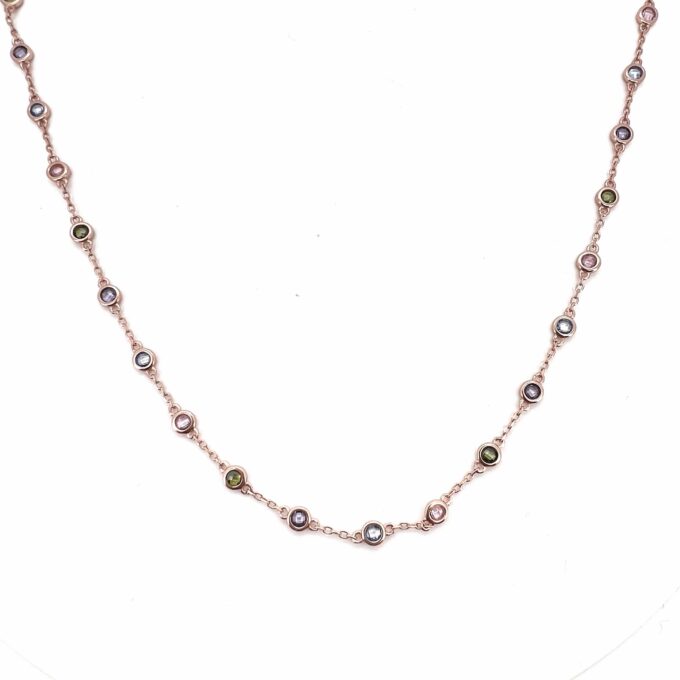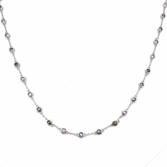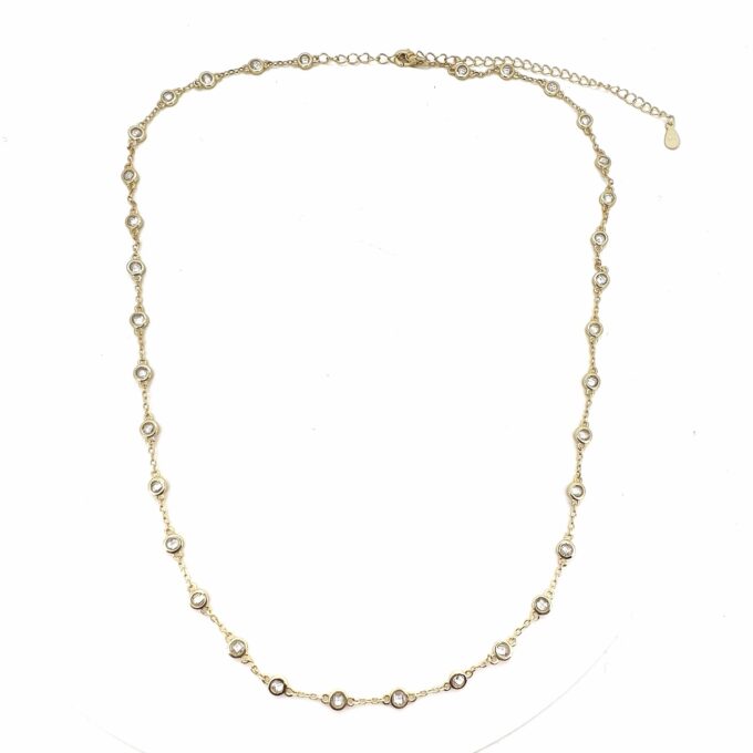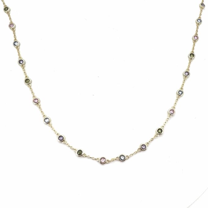 שרשרת משובצת אבני זרקון עגולות שקופות או צבעוניות