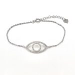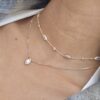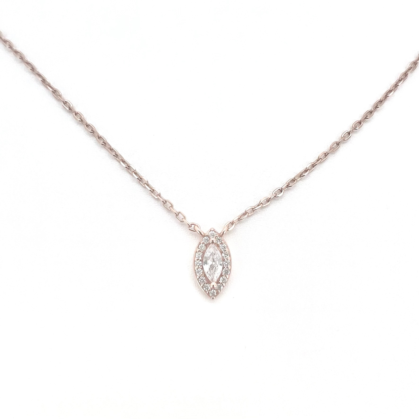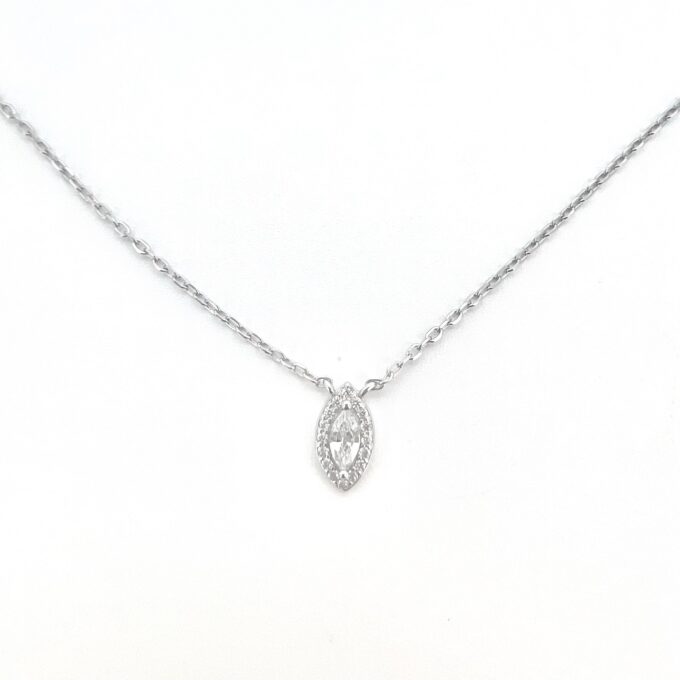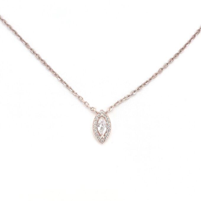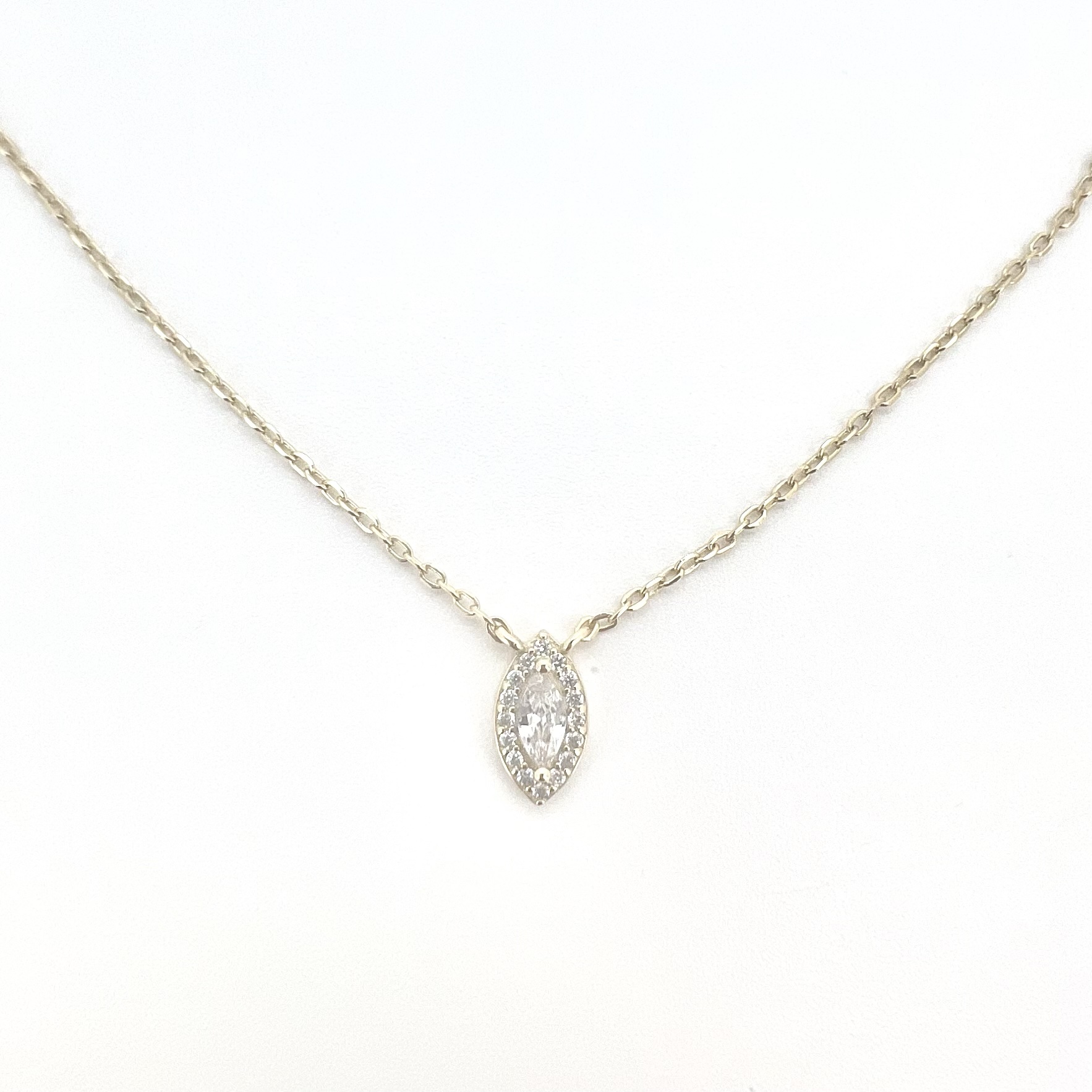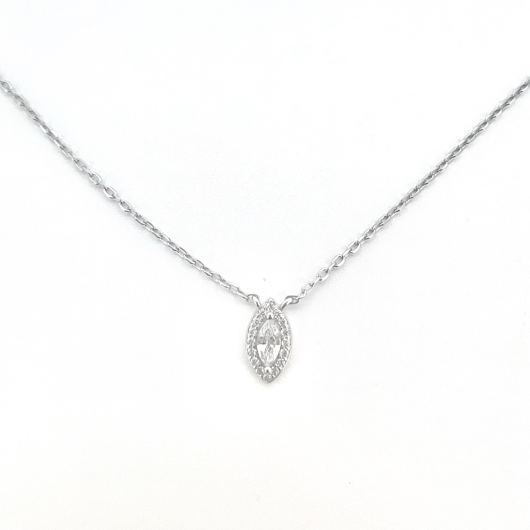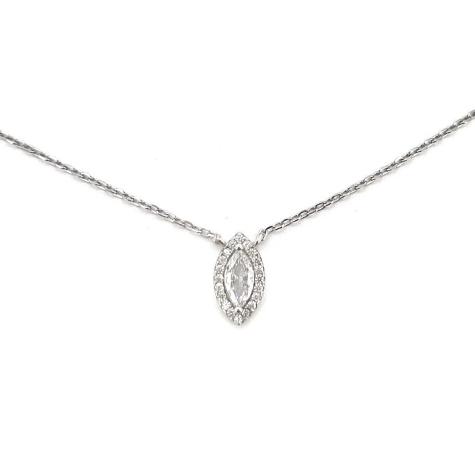 שרשרת עם תליון אבן זרקון בצורת מרקיזה משובצת מסביב מכסף אמיתי 925
