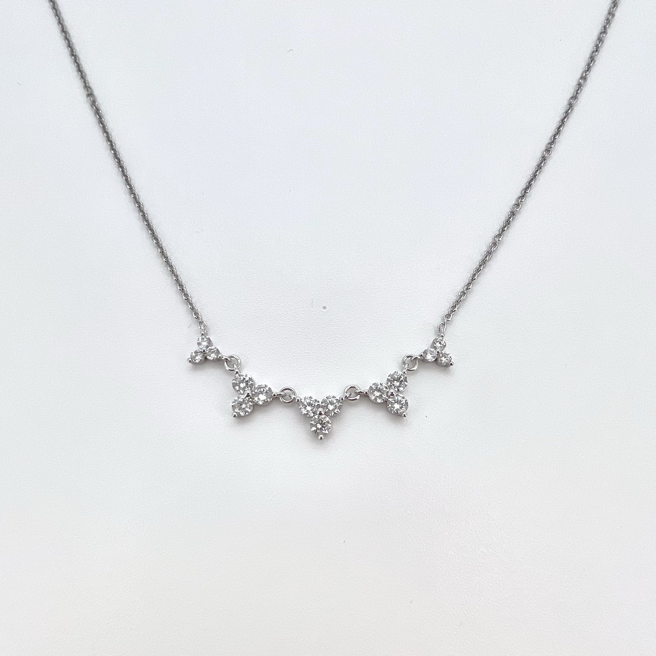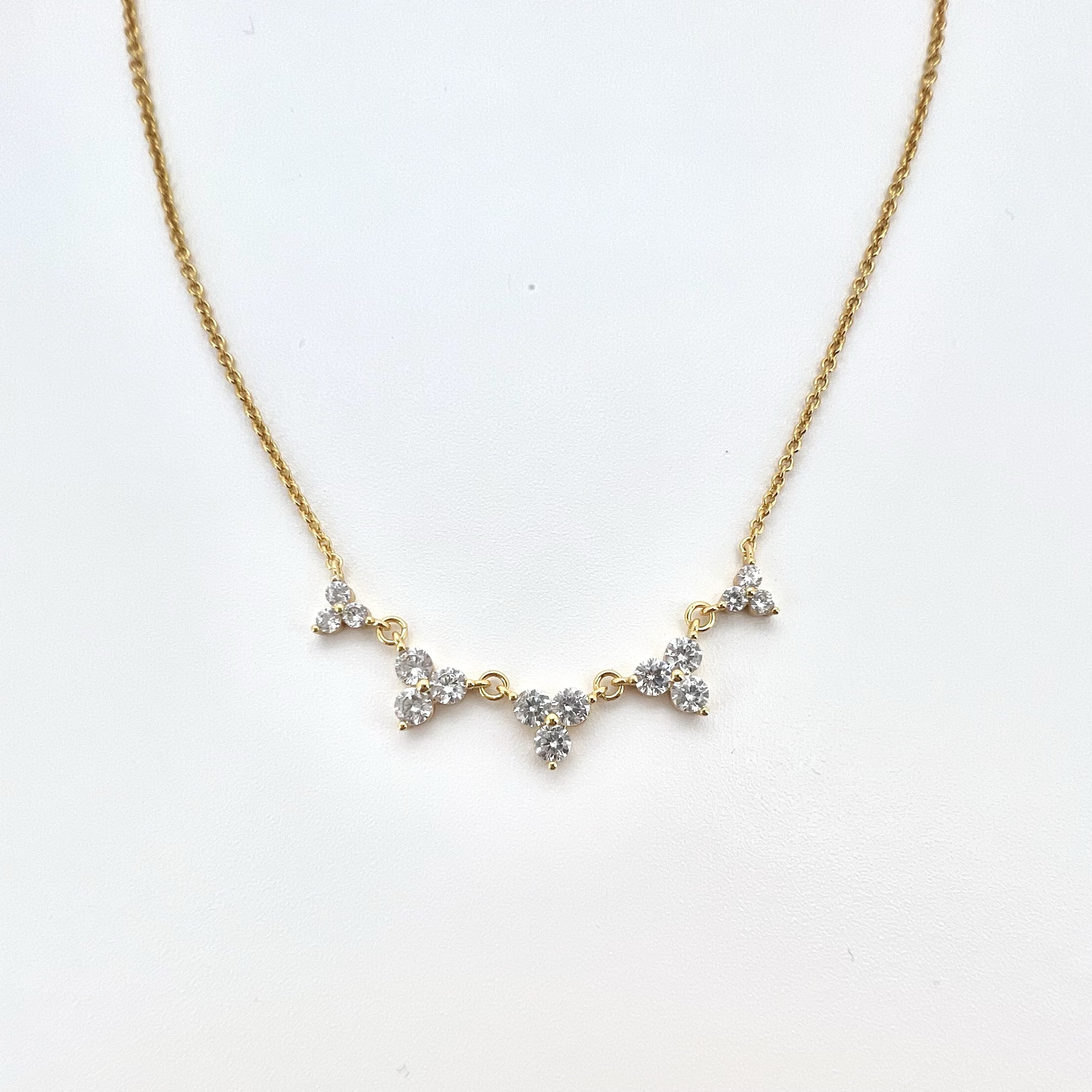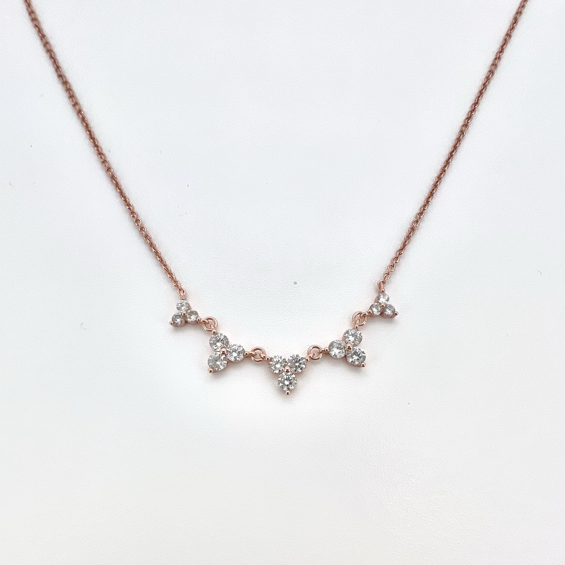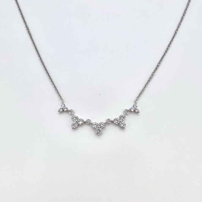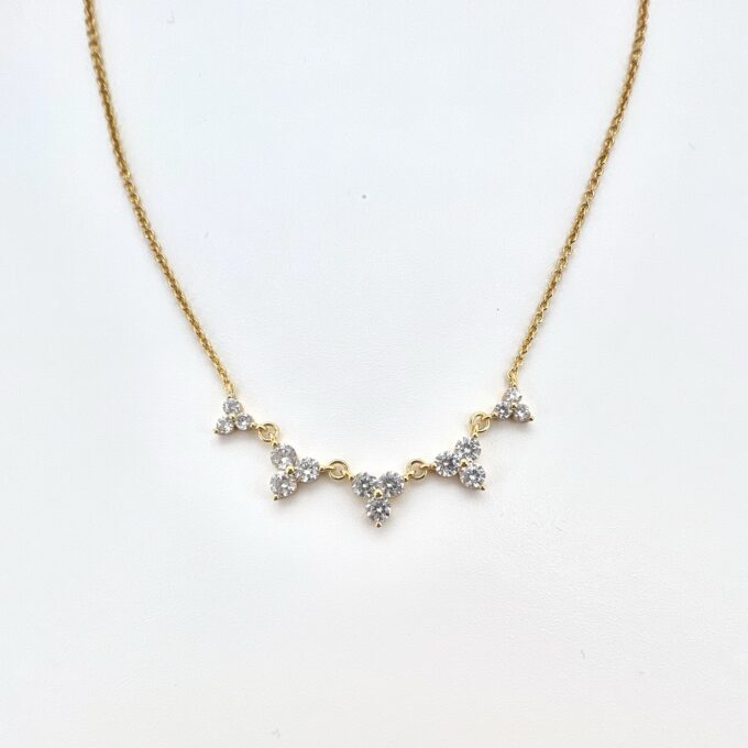 שרשרת עם חמישה משולשים משובצים 3 אבני זרקון עגולות
