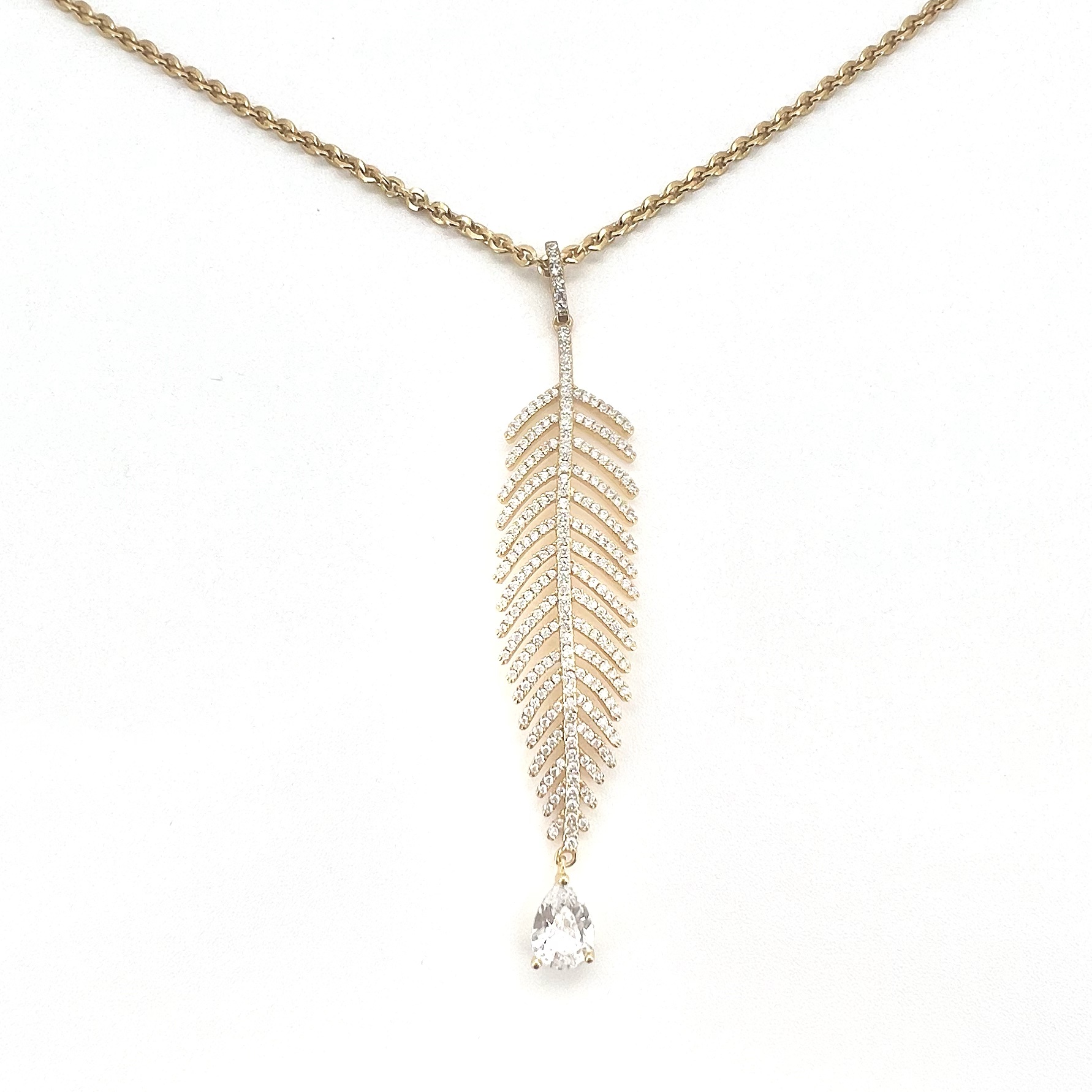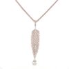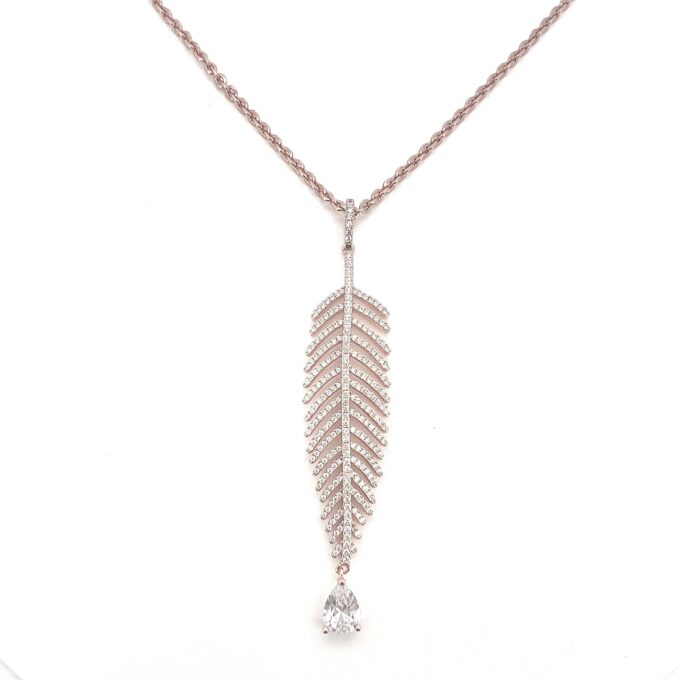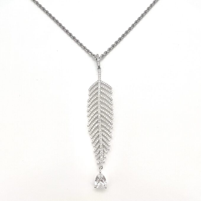 שרשרת עם תליון בצורת נוצה משובץ אבני זרקון עם אבן זרקון בצורת טיפה נופלת מרודיום איכותי