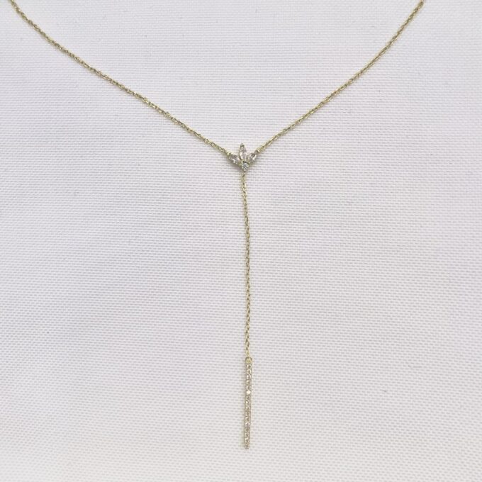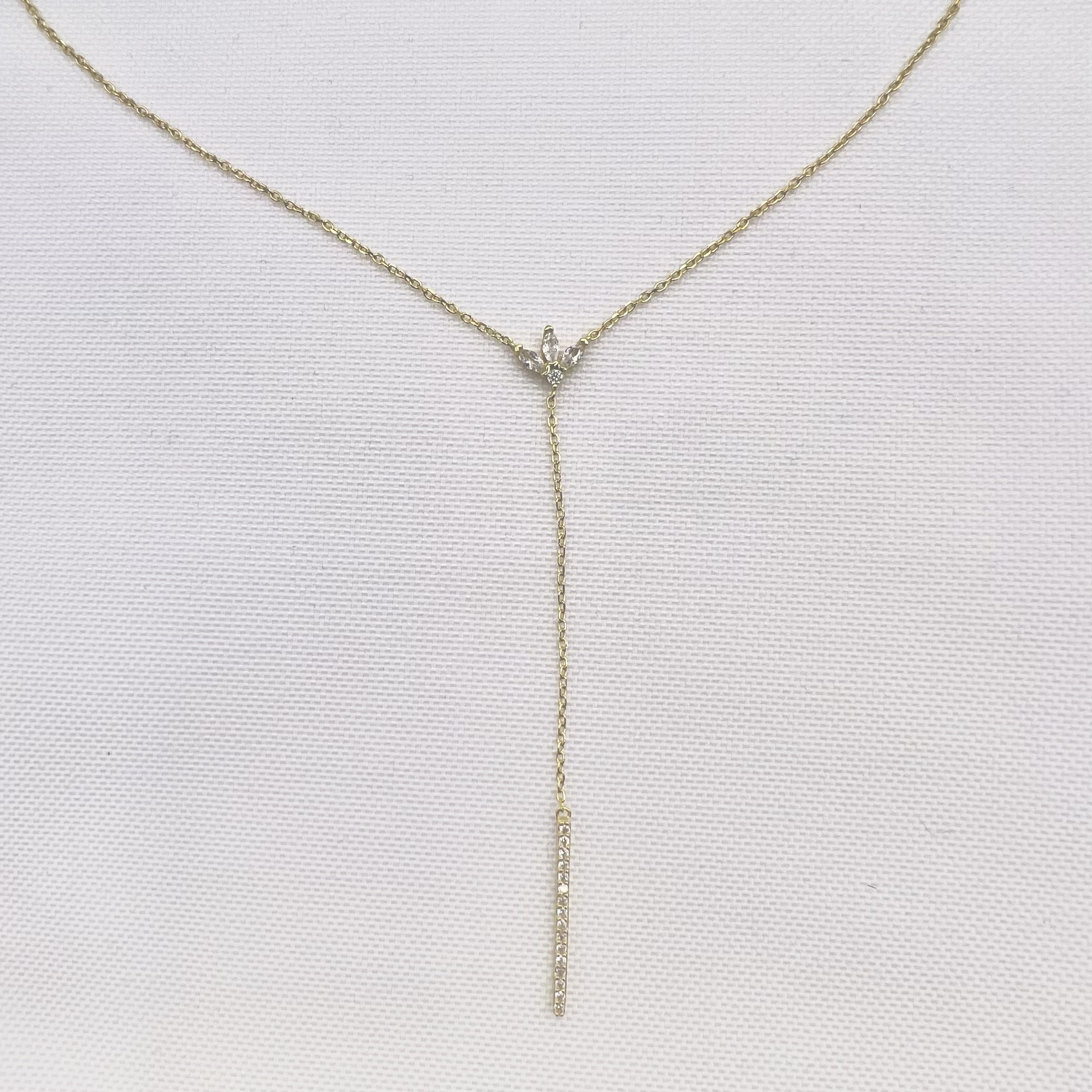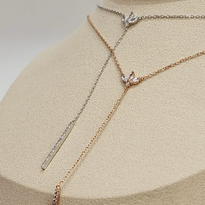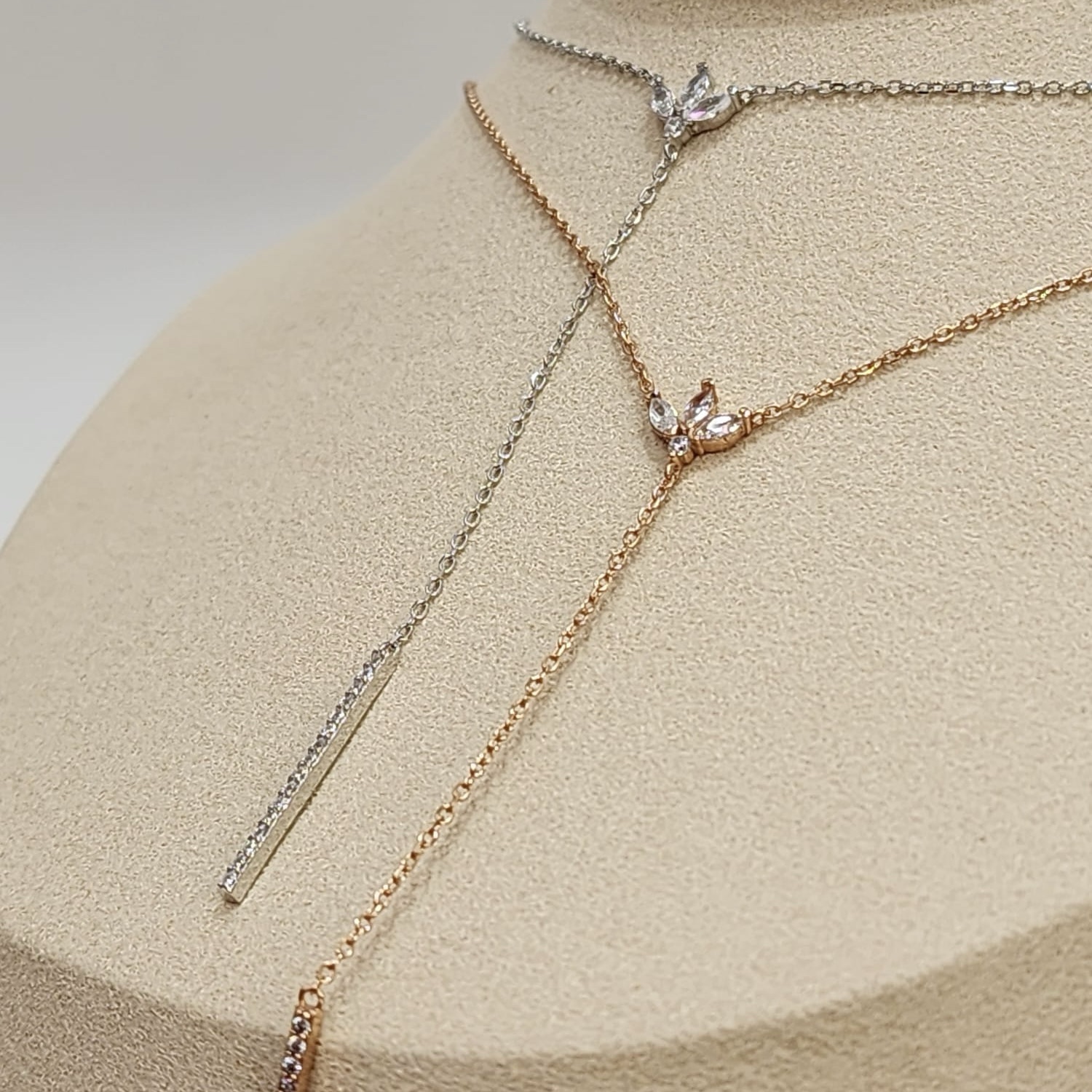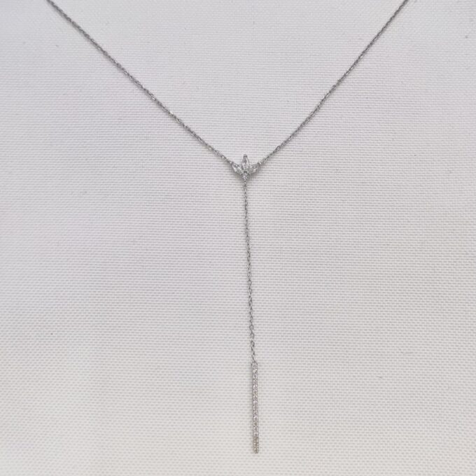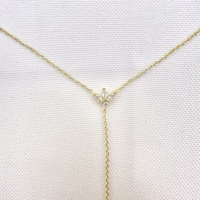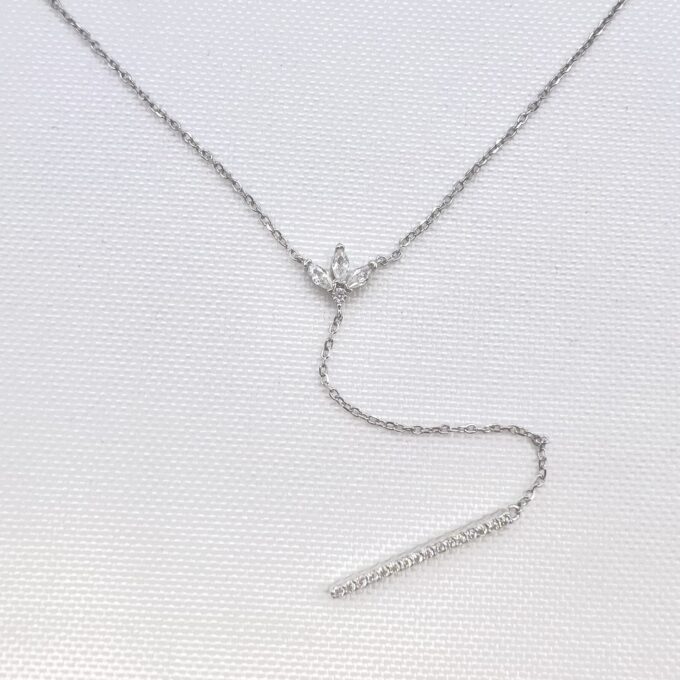 שרשרת עניבה עם אבני זרקון בצורת לוטוס במרכזה ולפלטה דקה משובצת מכסף אמיתי 925