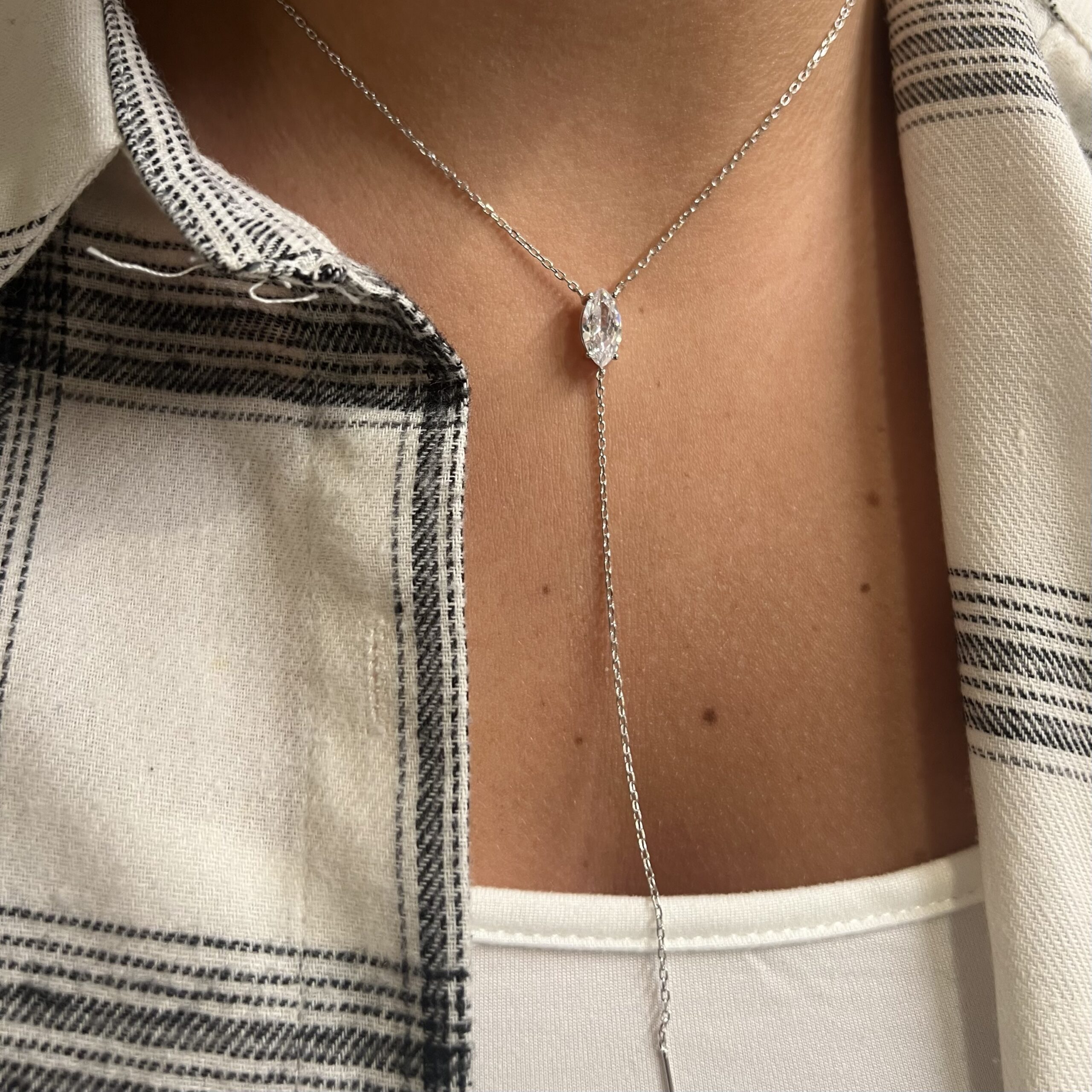 שרשרת עם אבן זרקון מרקיזה עם שרשרת נופלת מכסף אמיתי 925