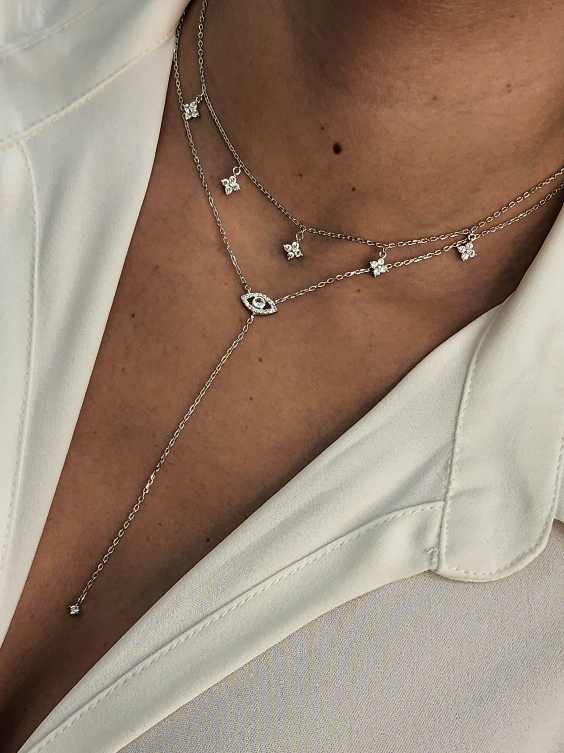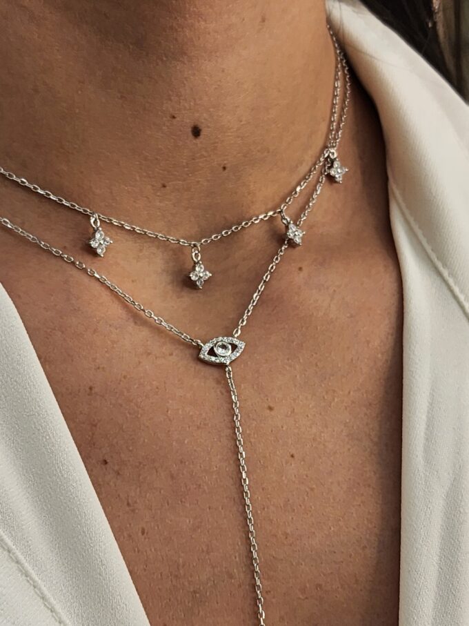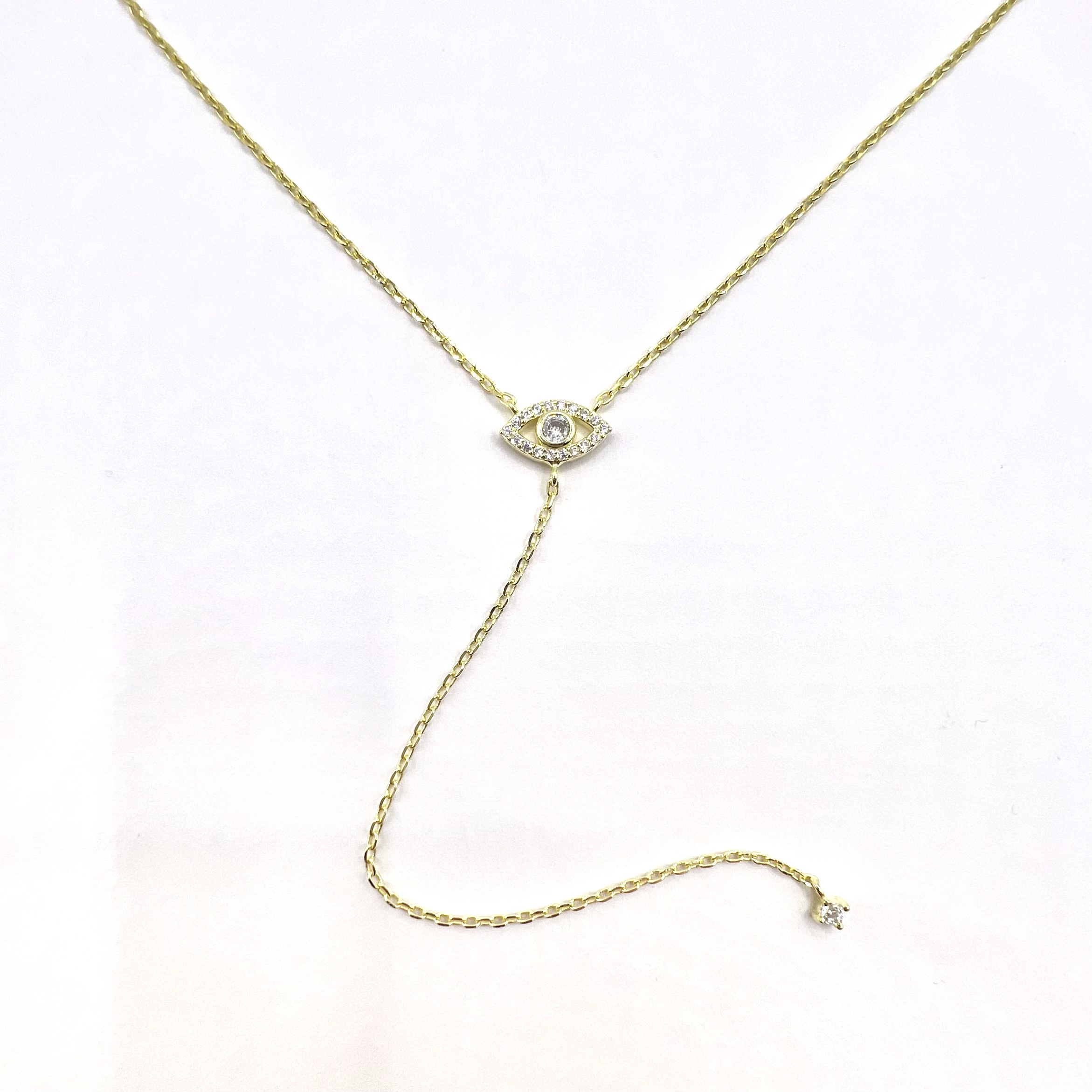שרשרת עניבה עם תליון עין משובצת אבני זרקון מסביב