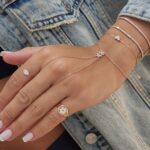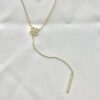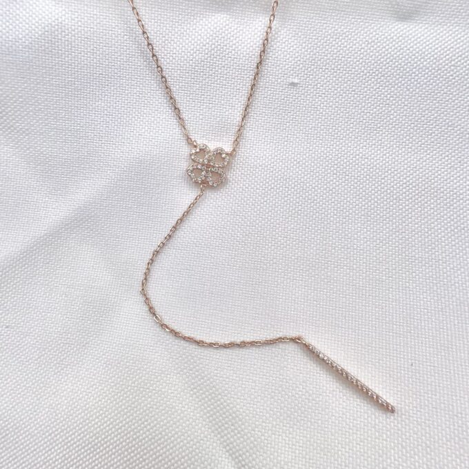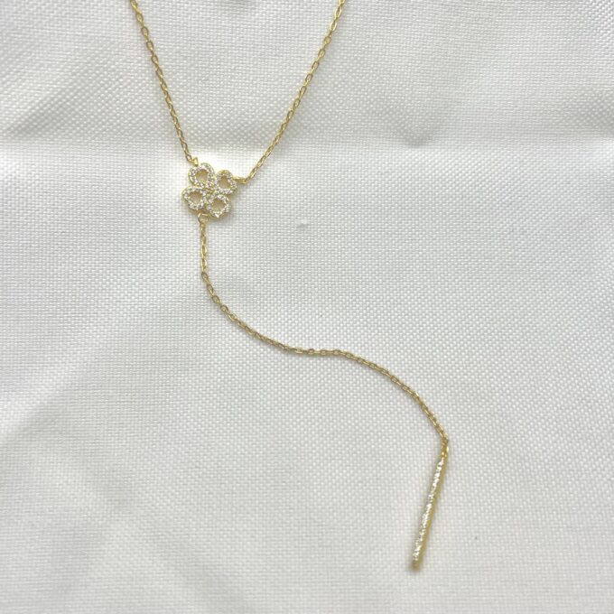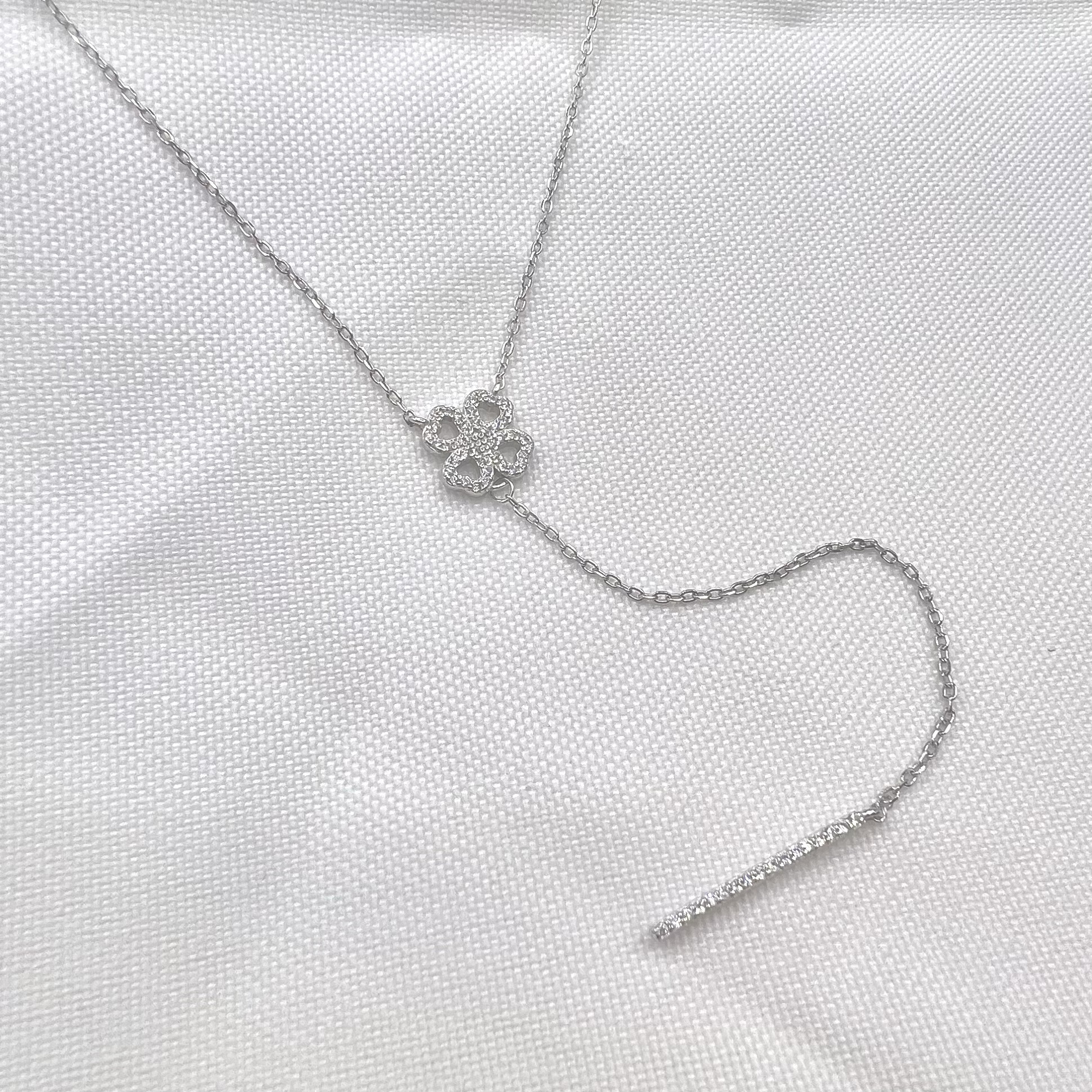 שרשרת עניבה עם תליון פרח משובץ אבני זרקון ופלטה דקה משובצת אבני זרקון מכסף אמיתי 925