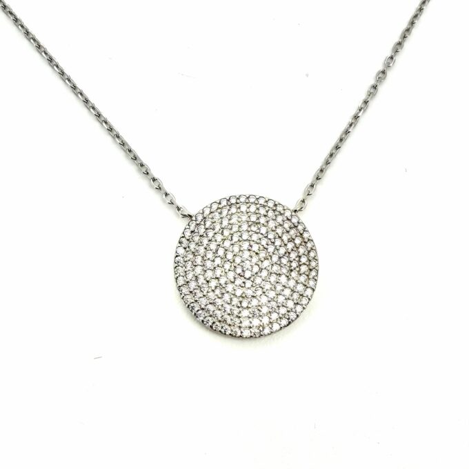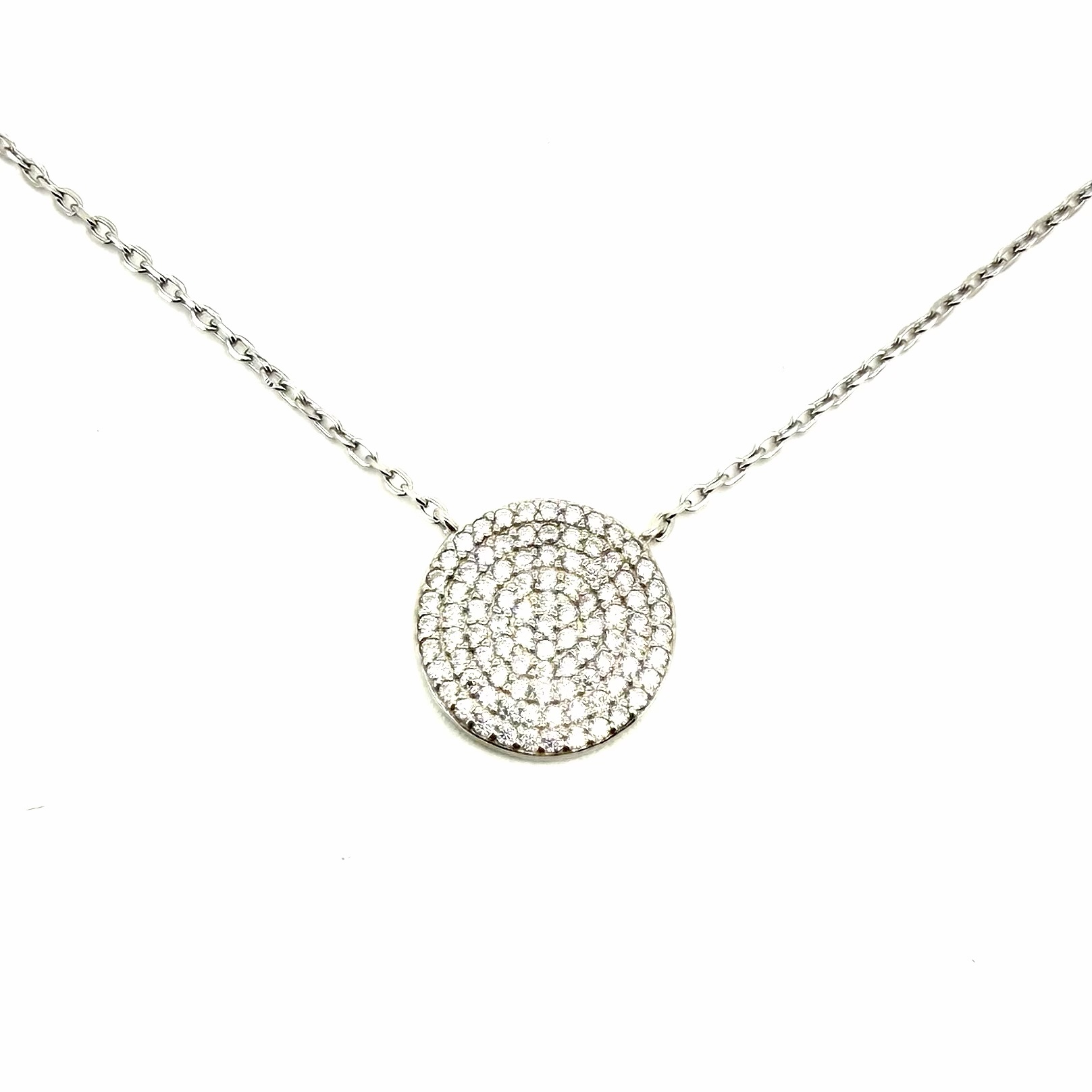 שרשרת עם תליון פלטה עגולה משובצת אבני זרקון