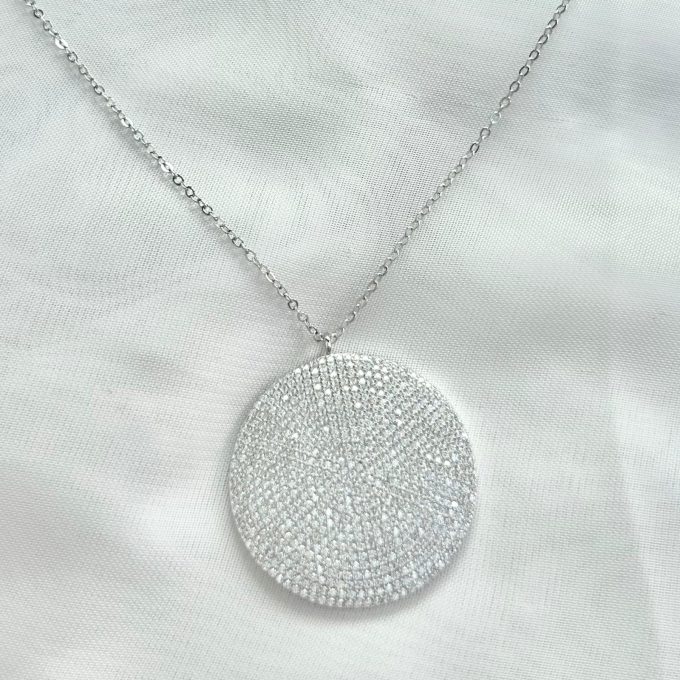 שרשרת פלטה עגולה משובצת מכסף אמיתי 925