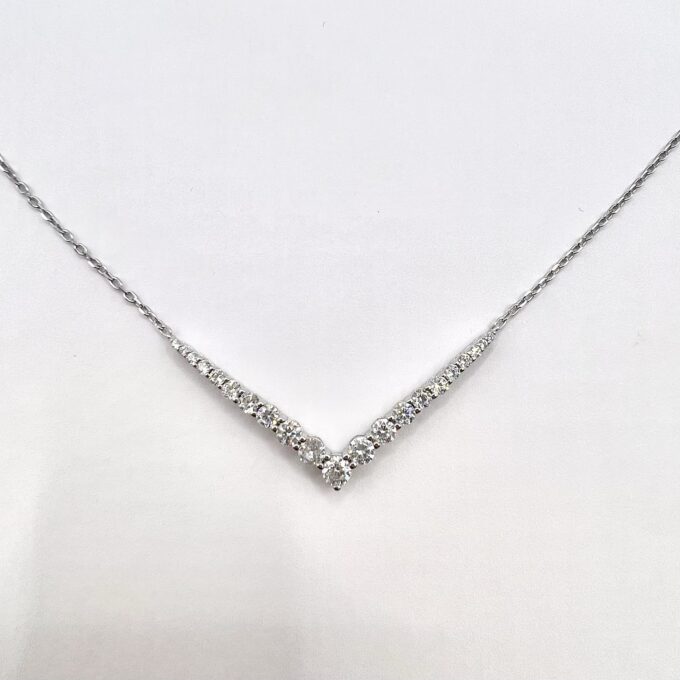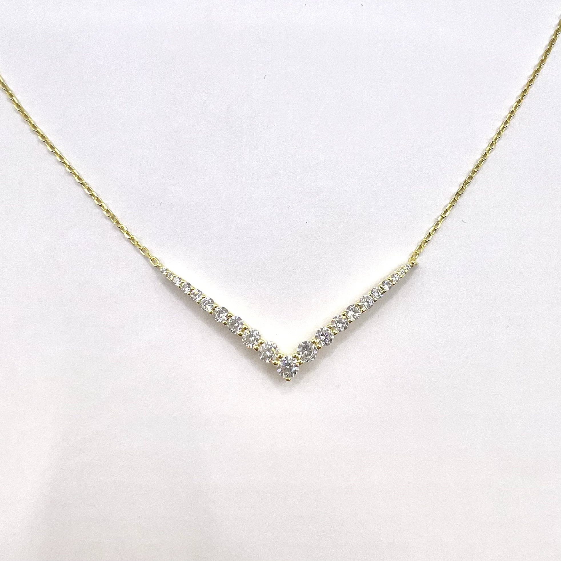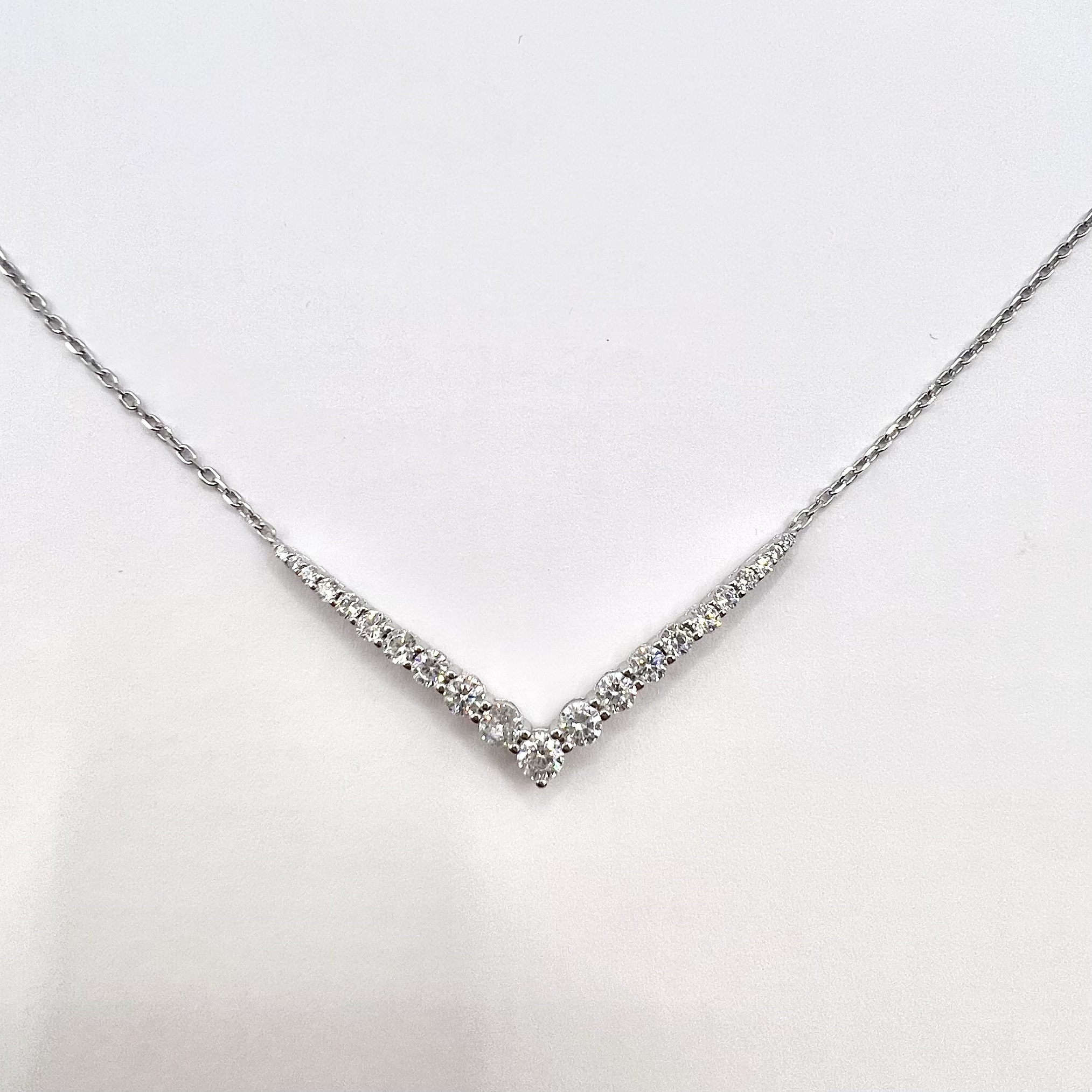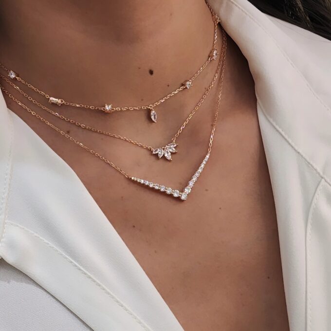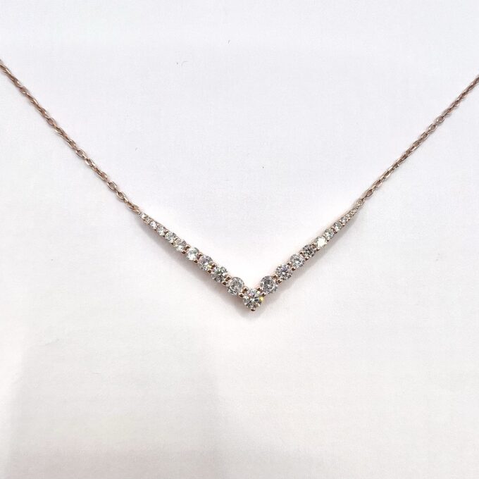 שרשרת עם פלטת אבני זרקון בצורת וי מכסף אמיתי 925