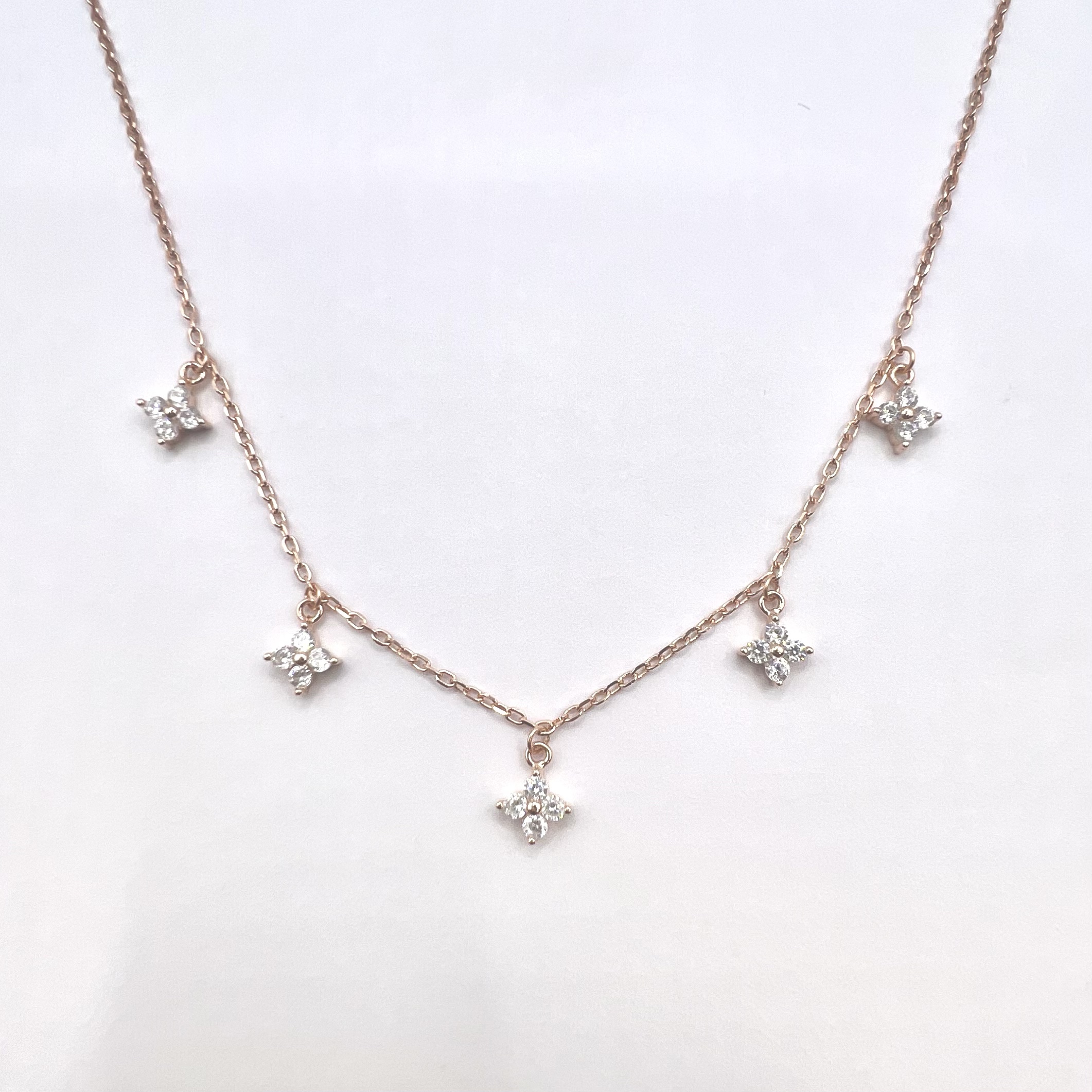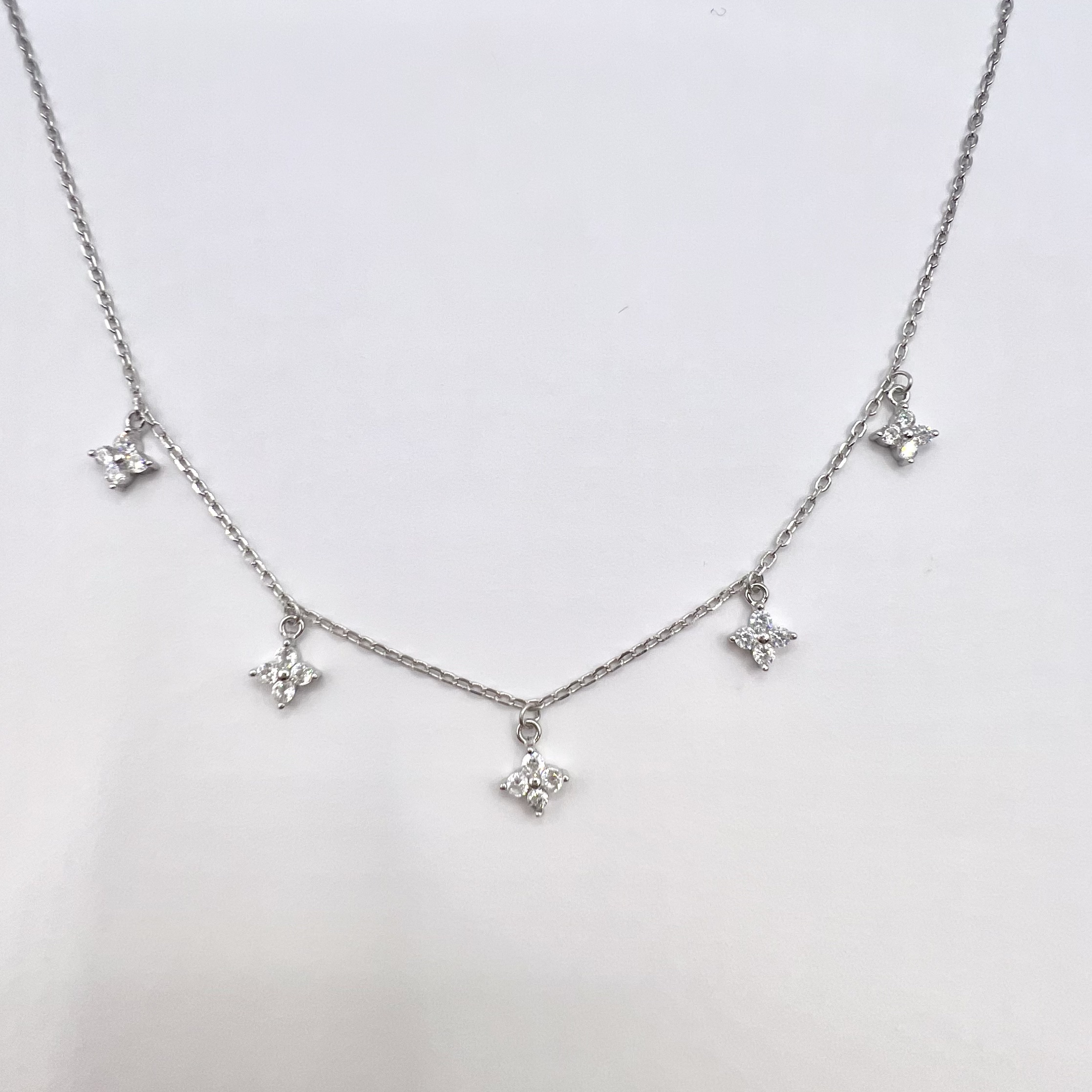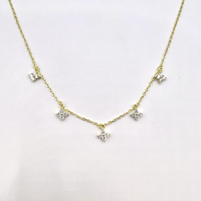 שרשרת עם 5 תליוני אבני זרקון בצורת פרחים מכסף אמיתי 925