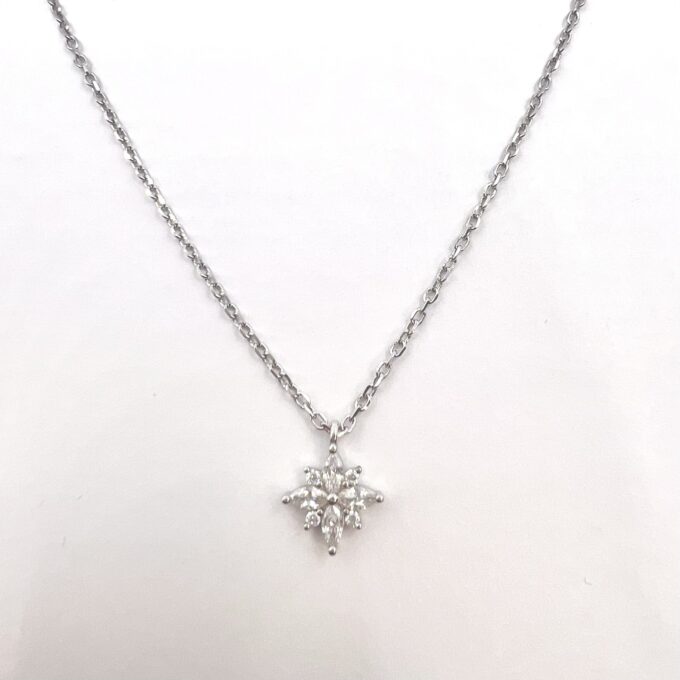 שרשרת עם תליון אבני זרקון בצורת פתיתי שלג מכסף אמיתי 925