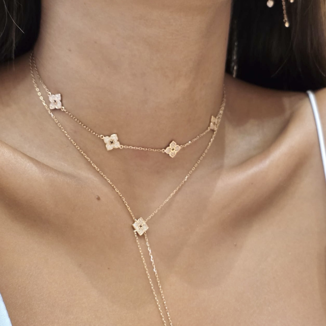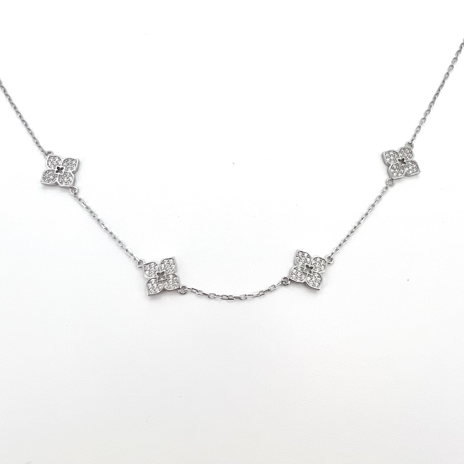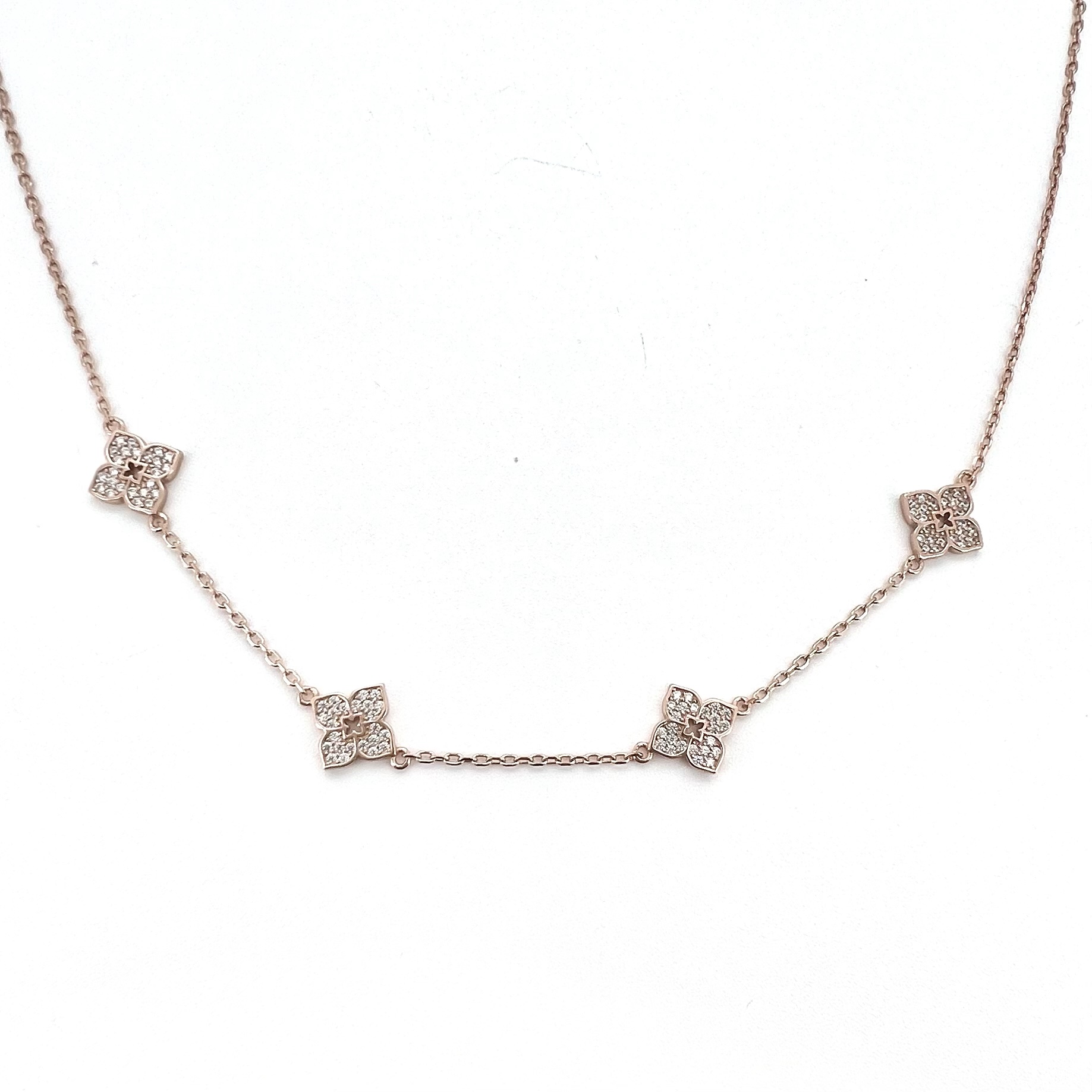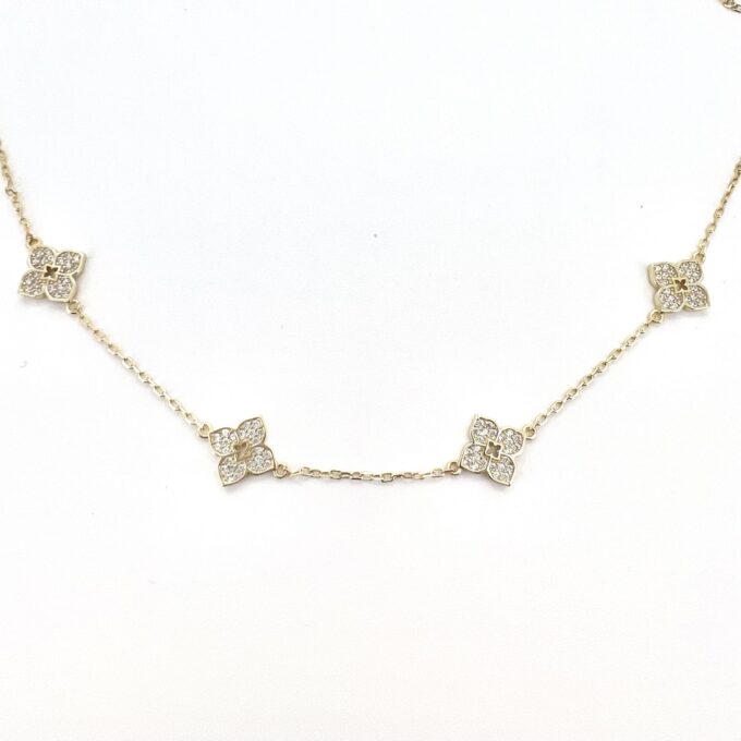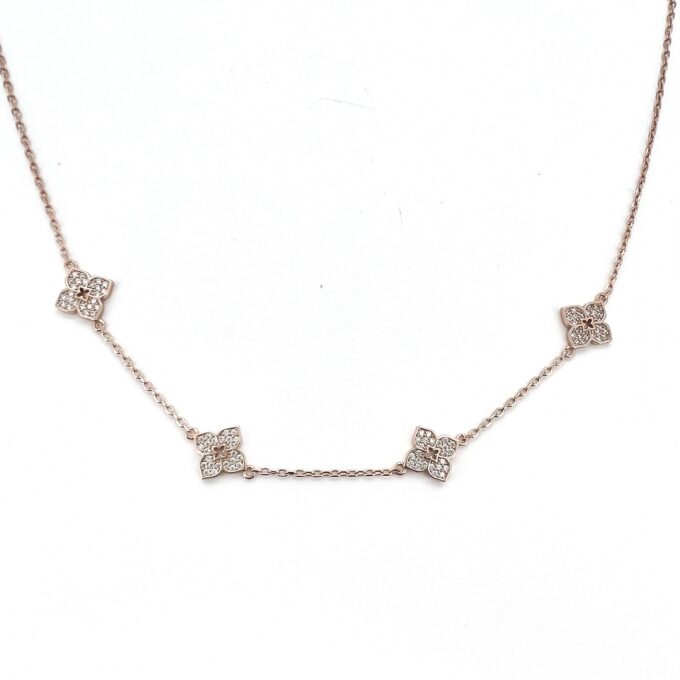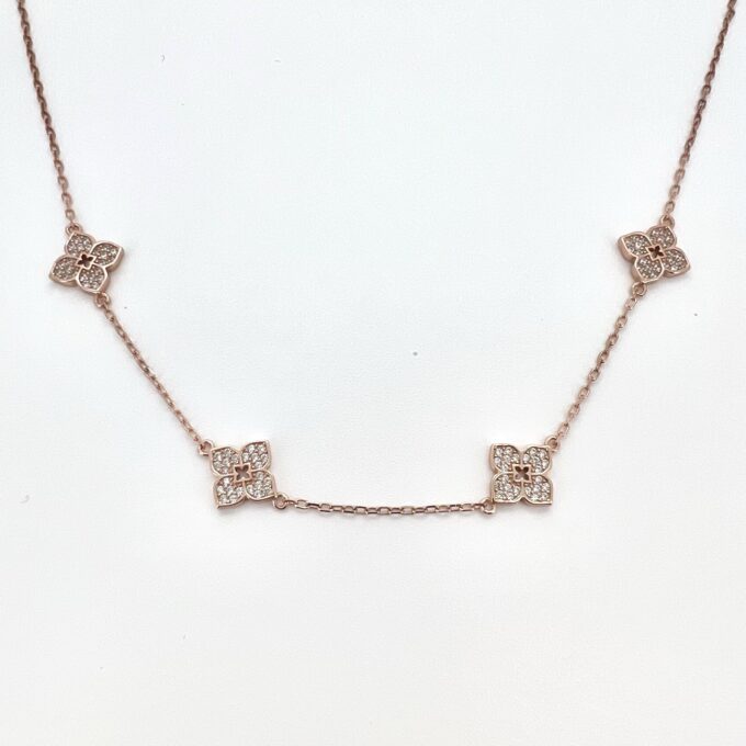 שרשרת צ׳וקר עם ארבעה תליונים פרח משובצים אבני זרקון מכסף אמיתי 925