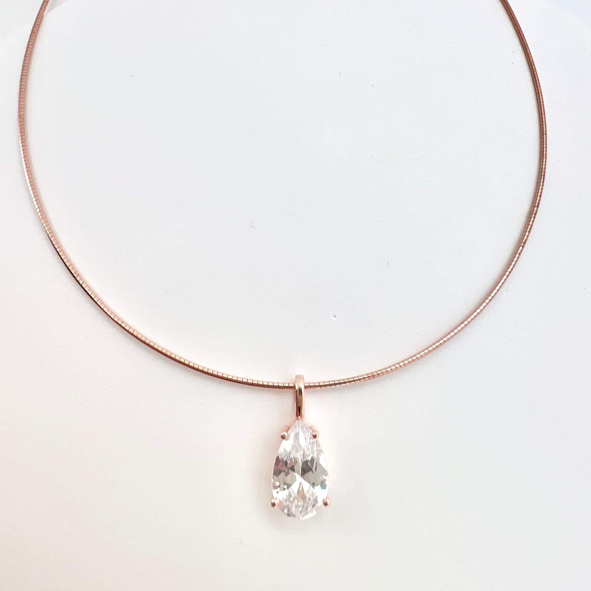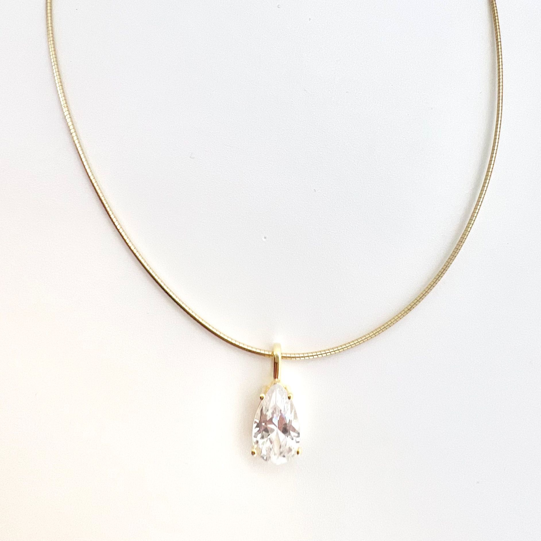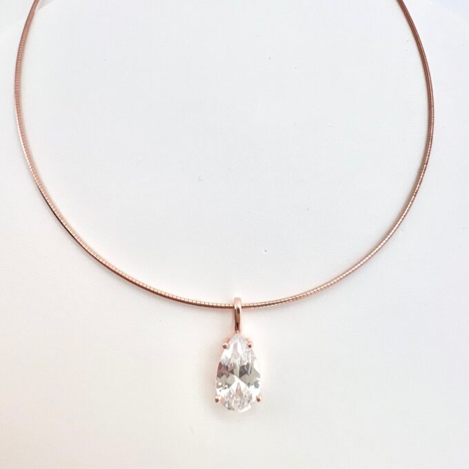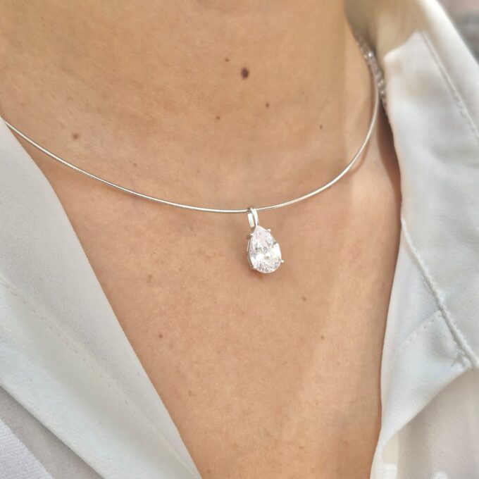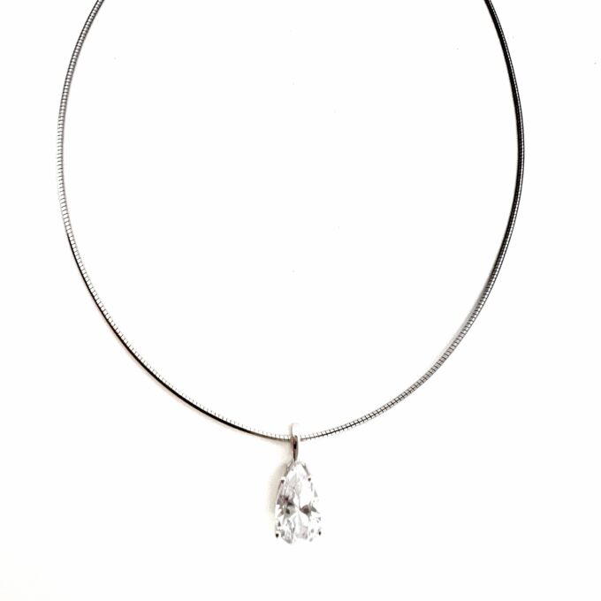 שרשרת קשיחה עם תליון אבן זרקון בצורת טיפה