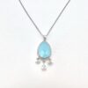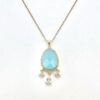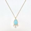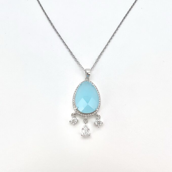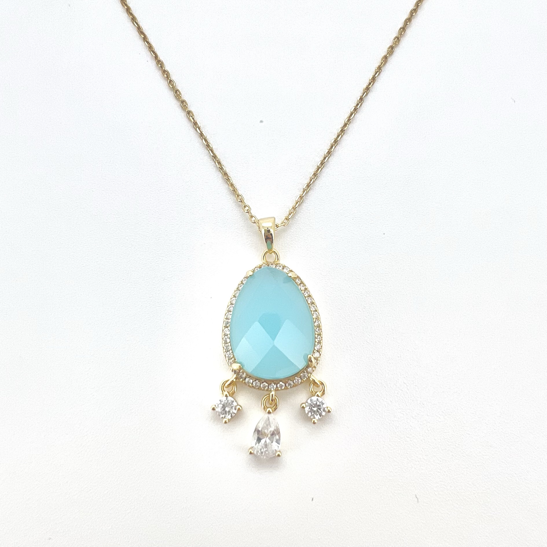 שרשרת עם תליון אבן מקרמה בצבע טורקיז משובצת אבני זרקון מסביב ועוד שלושה אבני זרקון נופלים ממנה