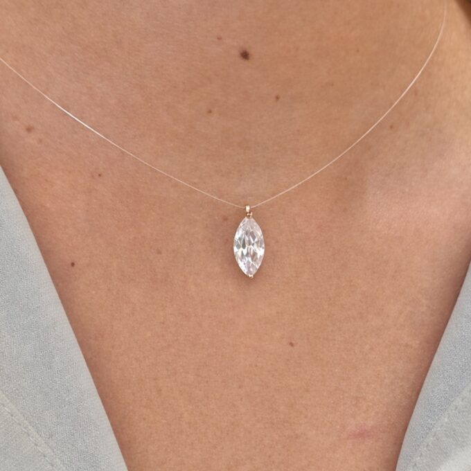 שרשרת חוט שקוף עם תליון משובץ אבן זרקון בצורת מרקיזה