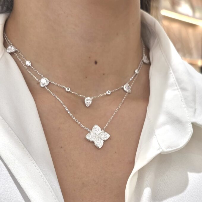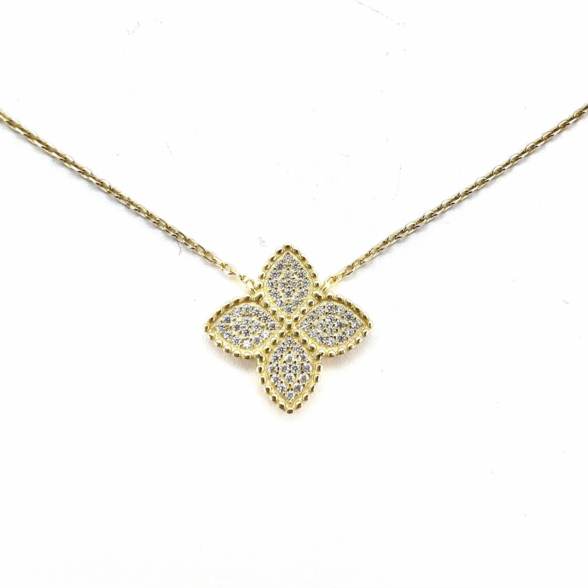 שרשרת עם תליון בצורת פרח משובץ אבני זרקון