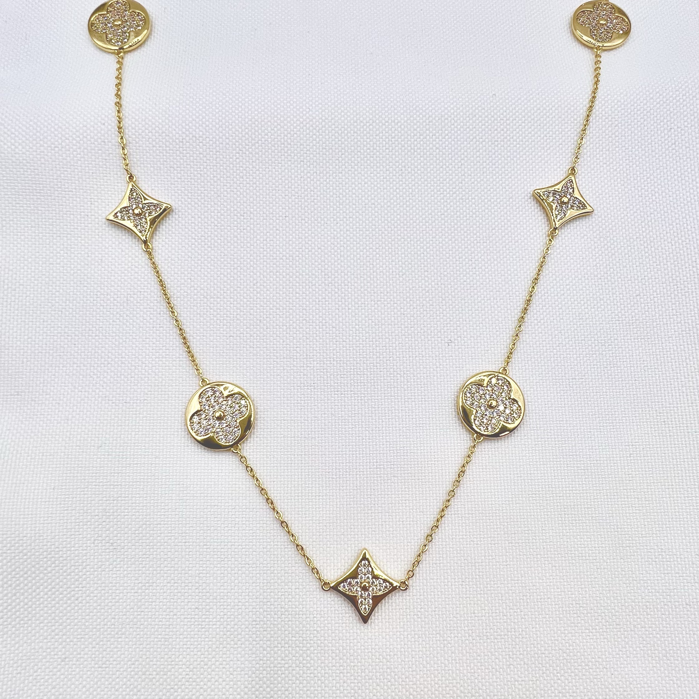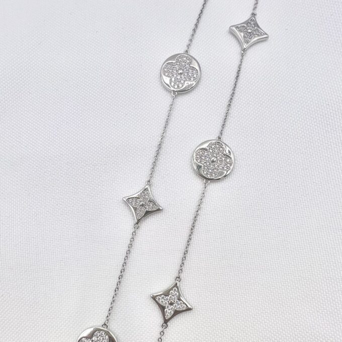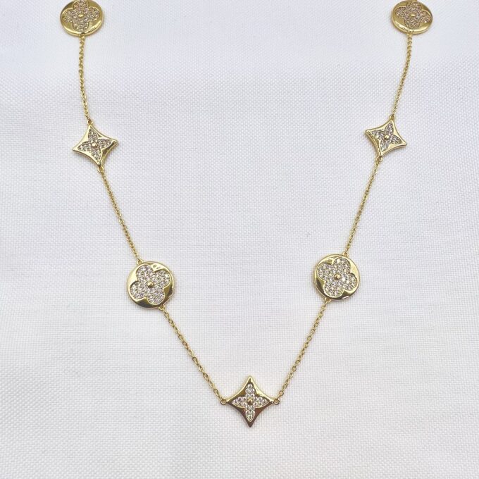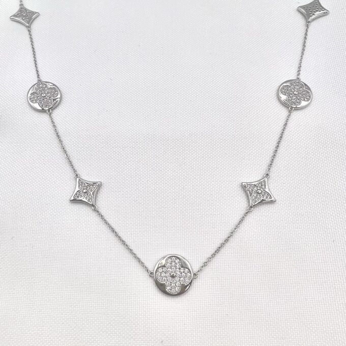 שרשרת עם תליוני תלתן וכובב משובץ אבני זרקון לכל אורך השרשרת מרודיום איכותי